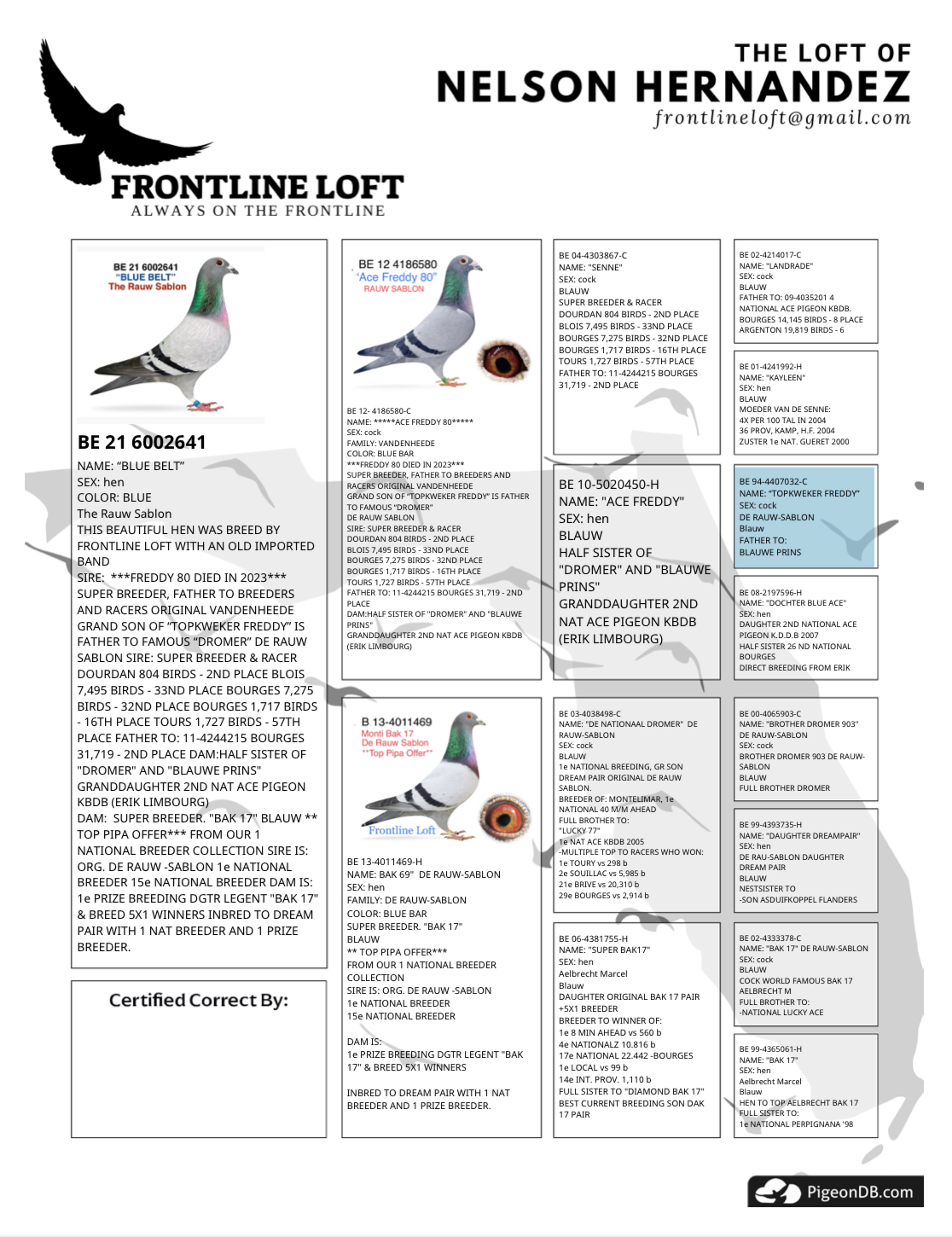 THIS BEAUTIFUL HEN WAS BREED BY FRONTLINE LOFT WITH AN OLD IMPORTED BAND