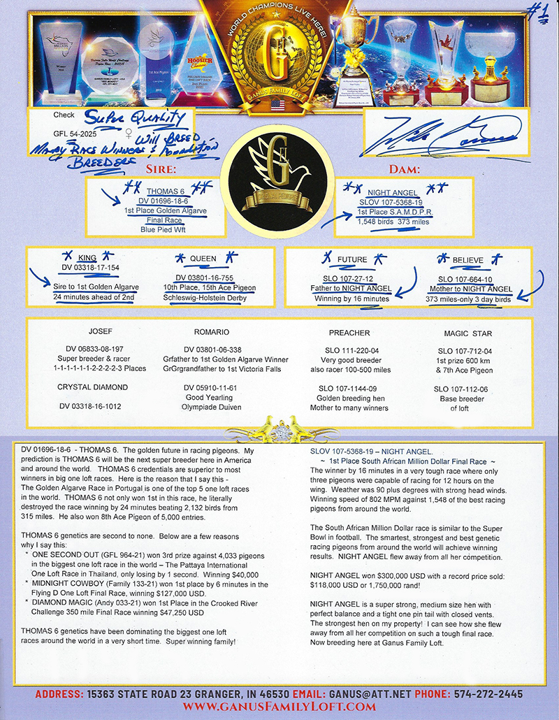 Race winner. Won by 16 minutes from 373 miles against 1,548 birds.