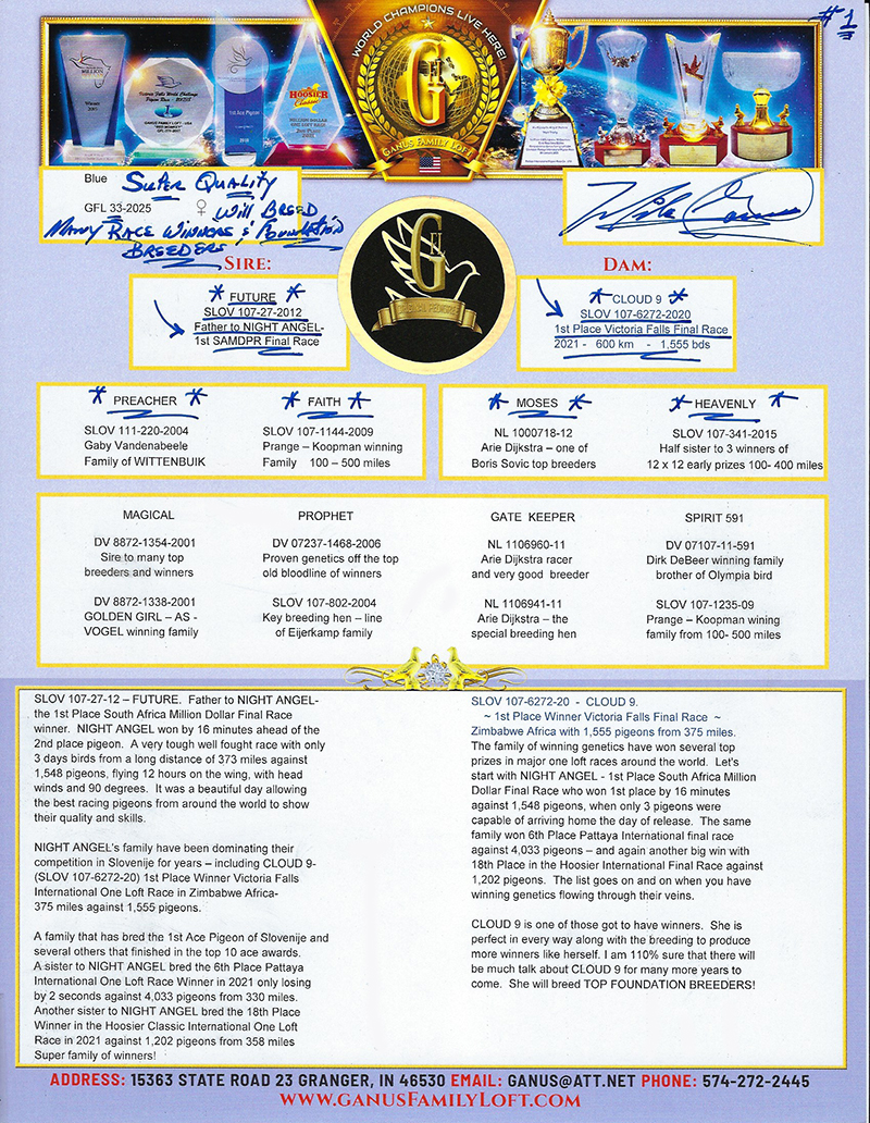 Sire: FUTURE – father to NIGHT ANGEL – 1st Place South Africa Million Dollar Final