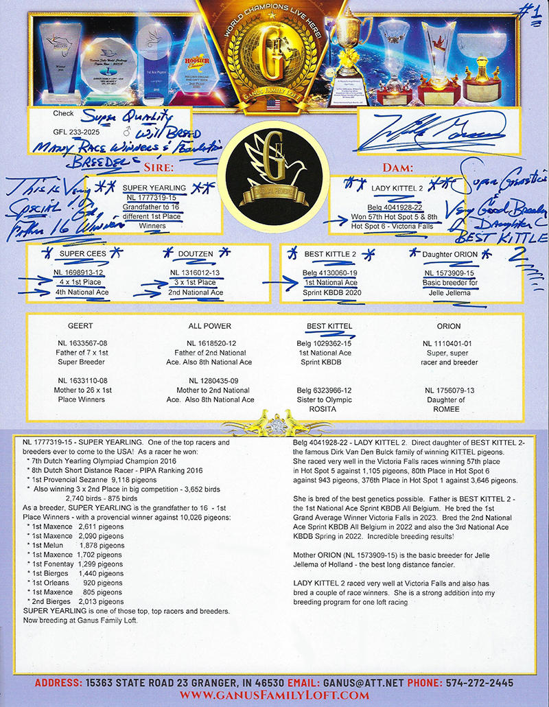 Sire: SUPER YEARLING – winner of 7th Dutch Yearling Olympiad