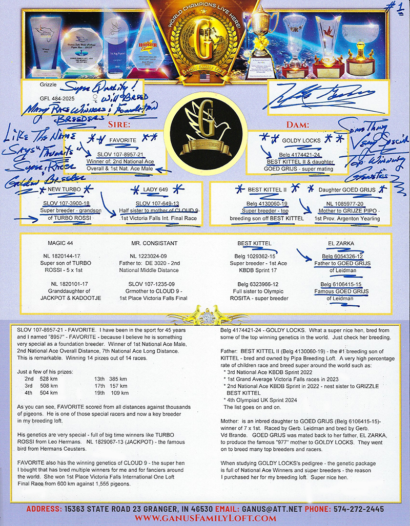 PIPA Breeding Loft. GOED GRIJS – raced by Gerb. Leidman, winner of