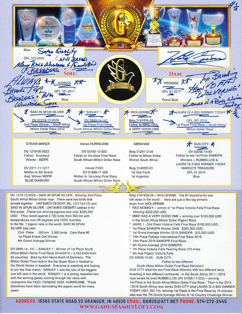 Sire: KANSAS – son of SAID IN SPUN SILVER (2nd Place SAMDPR