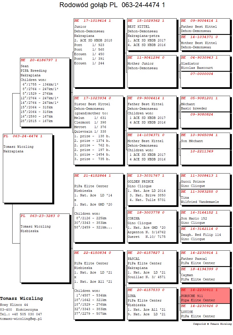 Beautyful cock from top breeder, Sean, who himself is inbreded grandson of Best Kittel. Mother is grandchild of 4 1st Nat. Acebirds. very special pigeon with huge winning potential.