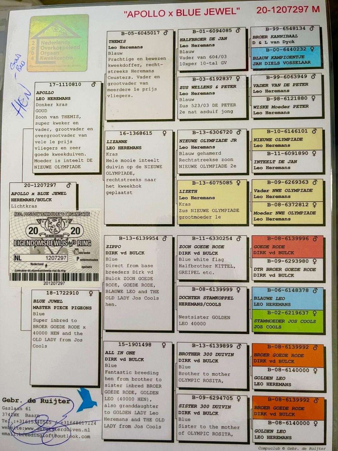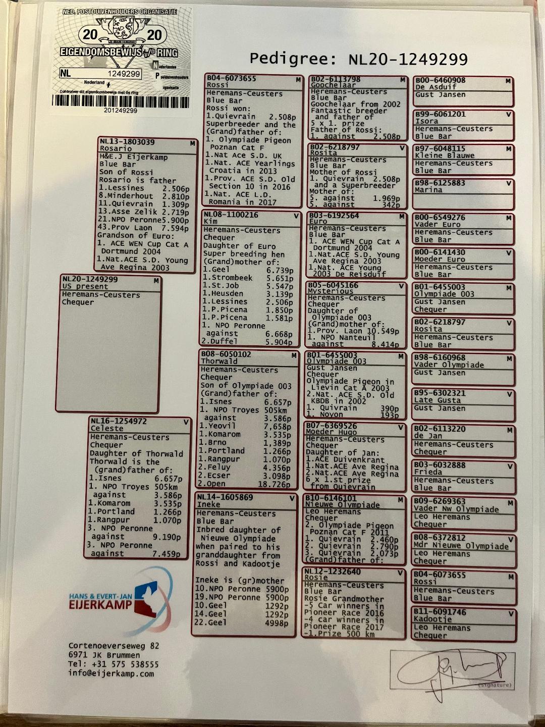 THIS HEN HAS ONLY BEEN BRED TO OUR ''NIEUWE THORWALD'' IMPORT DIRECT EIJERKAMP THEY HAVE BRED 350 M FINALIST IN OLR COMPETITION . HES THE BEST OF''OLYMPIADE OO3'' 2 XS THORWALD , ROSSI , EURO, JACK POT ALL THE GREAT BIRDS