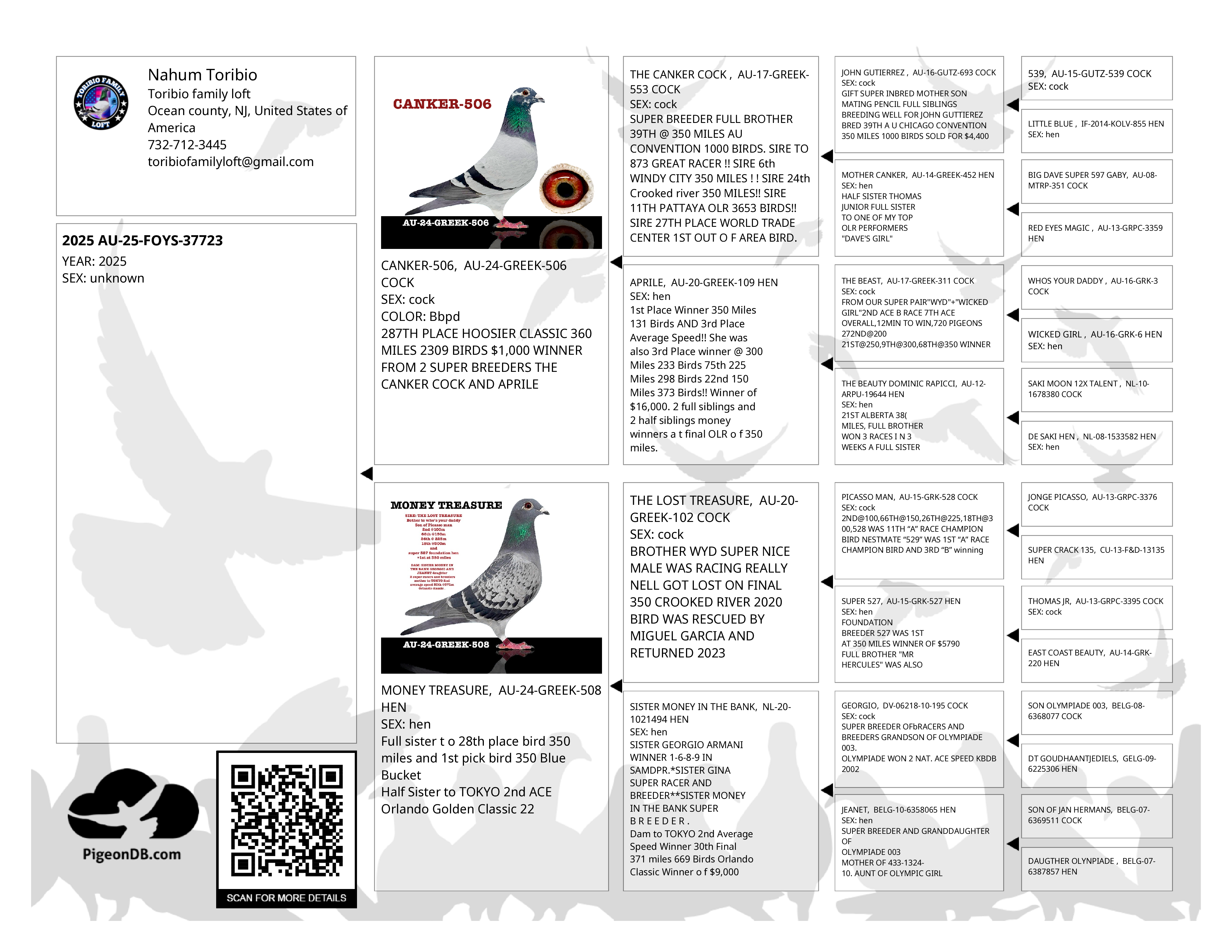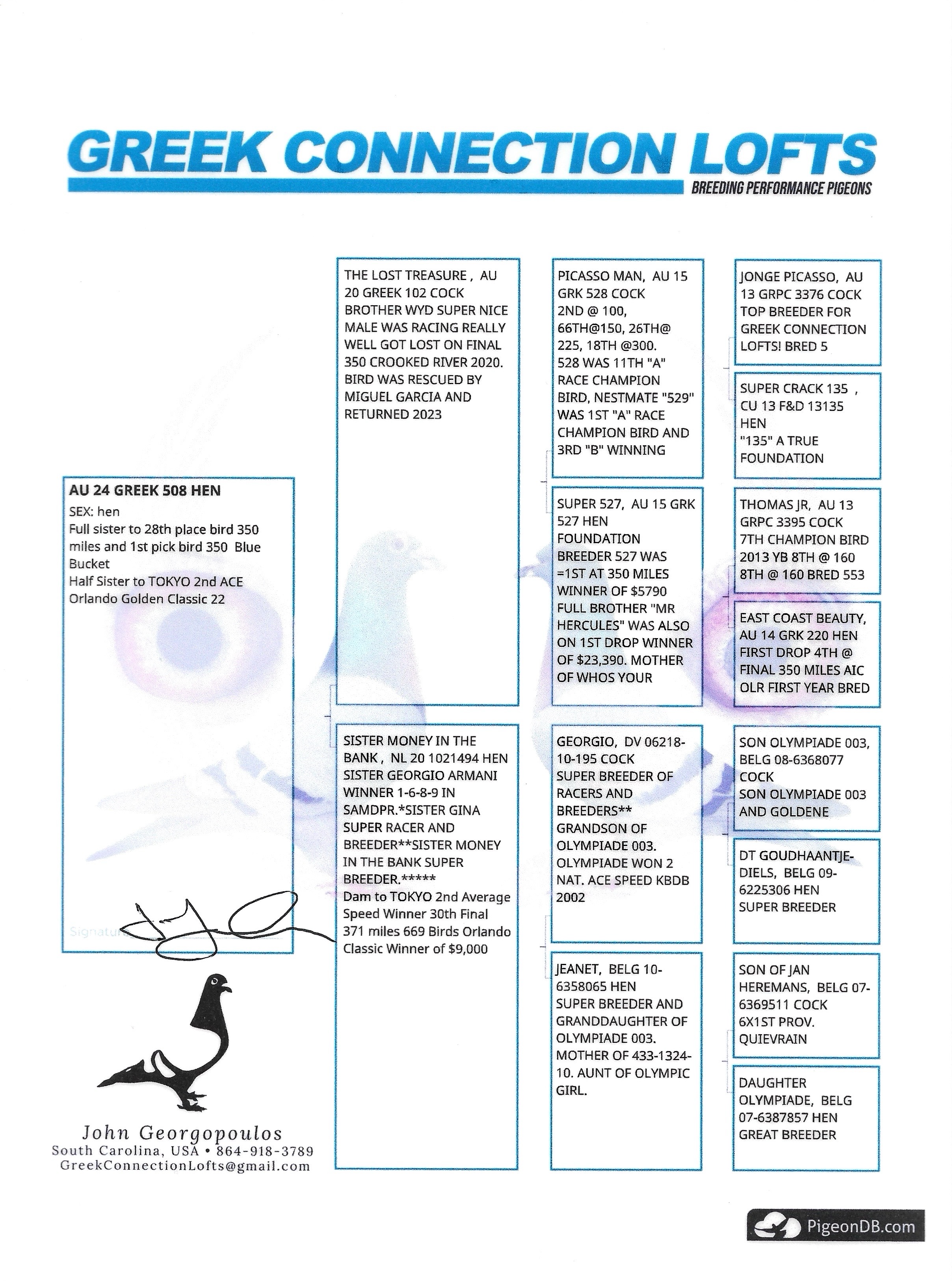 723 is a late hatch hen., she's medium to small, silky feathers ,close vent bones and well balanced . I sent few of her siblings to one loft races( Black gold and Louisiana perch). check her and parents pedigree for more info..