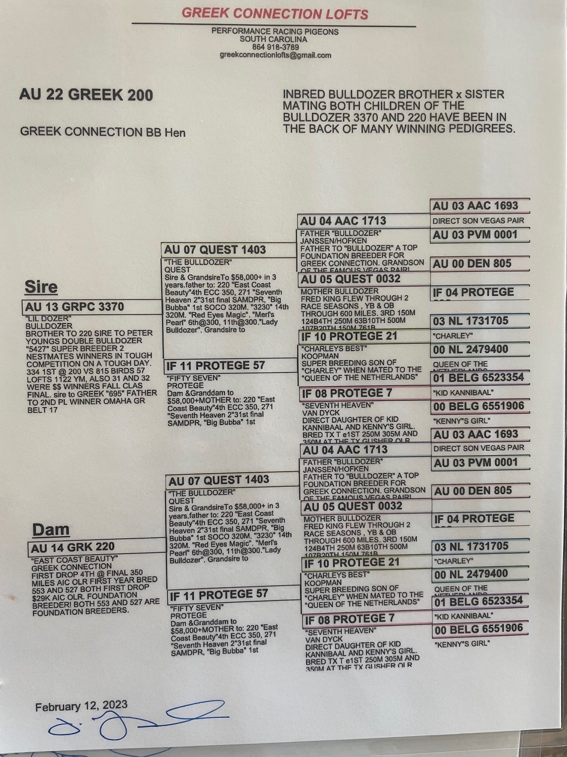 200 WHAT A HEN DOUBLE BRED BULLDOZER AND HANDELS SUPER ONLY BRED HER 2025 CHILDREN IN RACES.