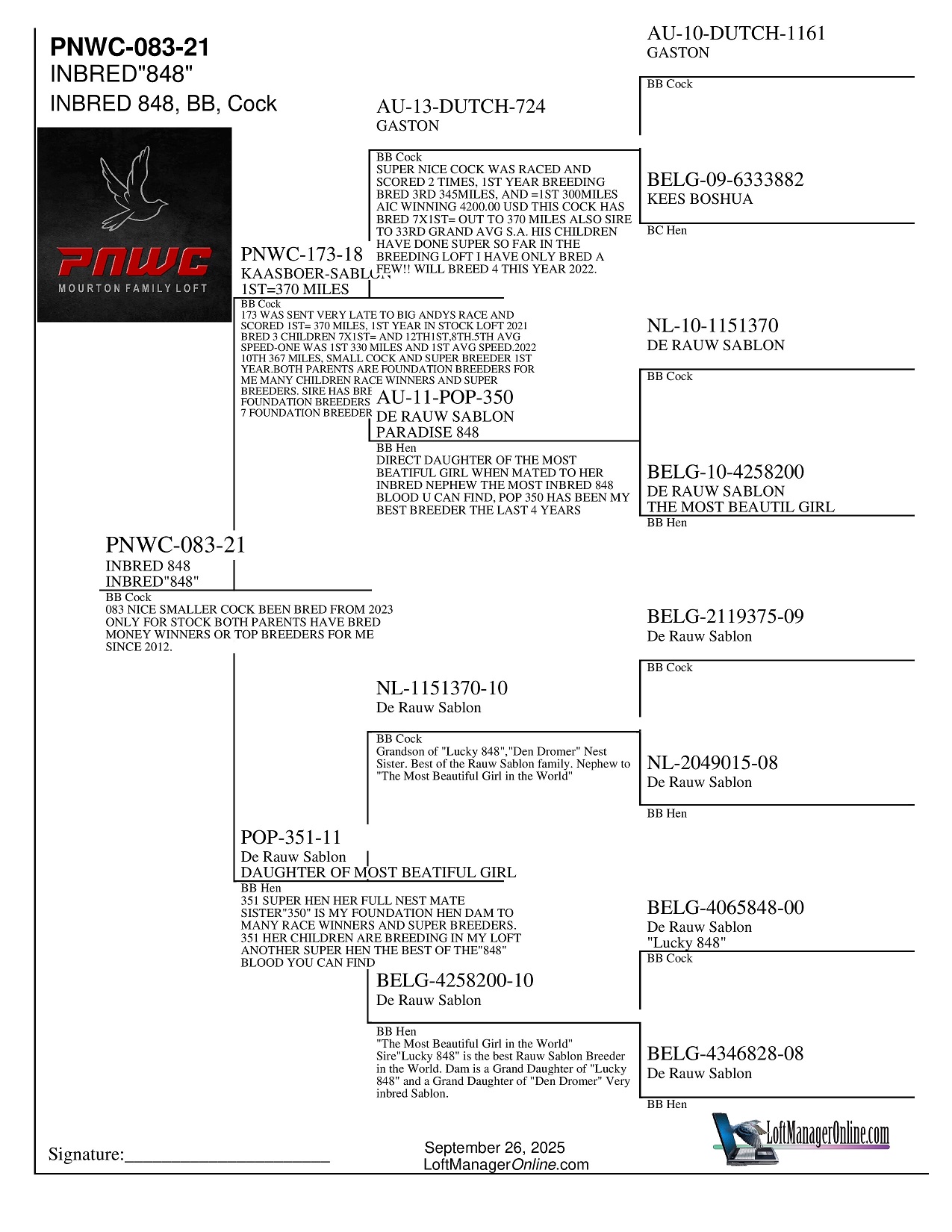 083 WAS BRED FOR STOCK OFF TWO SUPER SISTERS AND I JUST NEVER BRED HIM,FULL BROTHER BREEDING GOOD FOR A CUSTOMER IN TEXAS. ALL PAIRS BRED IN INDIVIDUAL PENS .