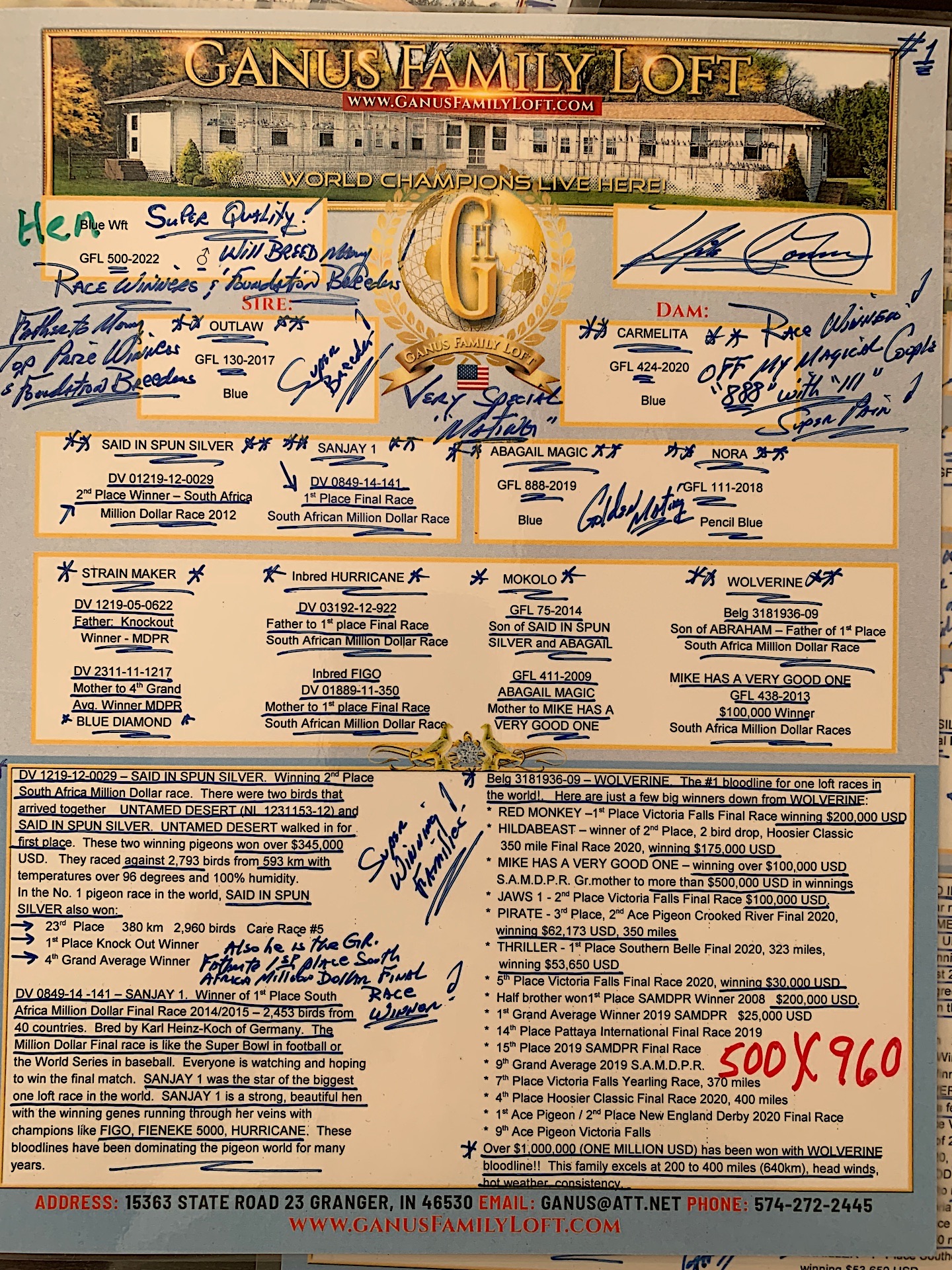GANUS always has the good stuff!! first one off of this pair. IF You do not know Sanjay 1 read the GFL Pedegree, or go to GFL, and look at Mike's pedigrees online.