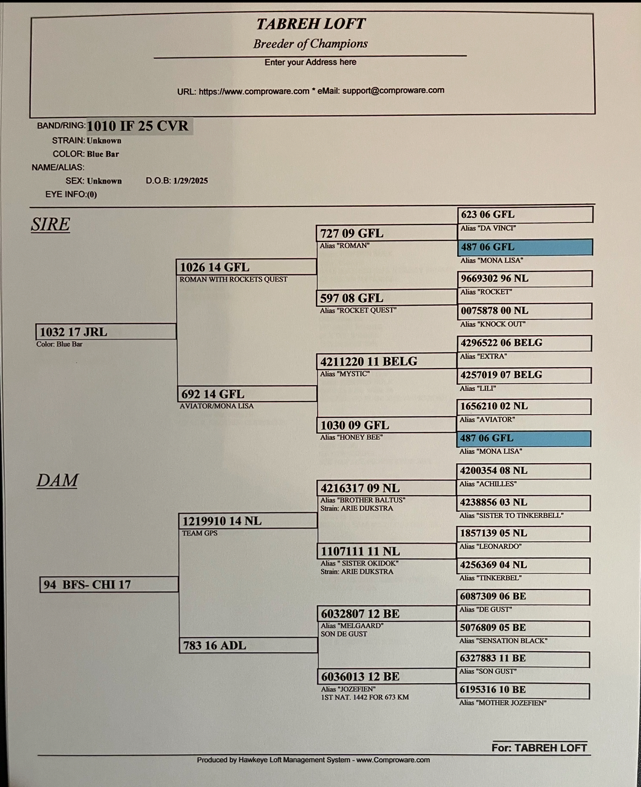 1010/25 inbred Mona Lisa and best blood