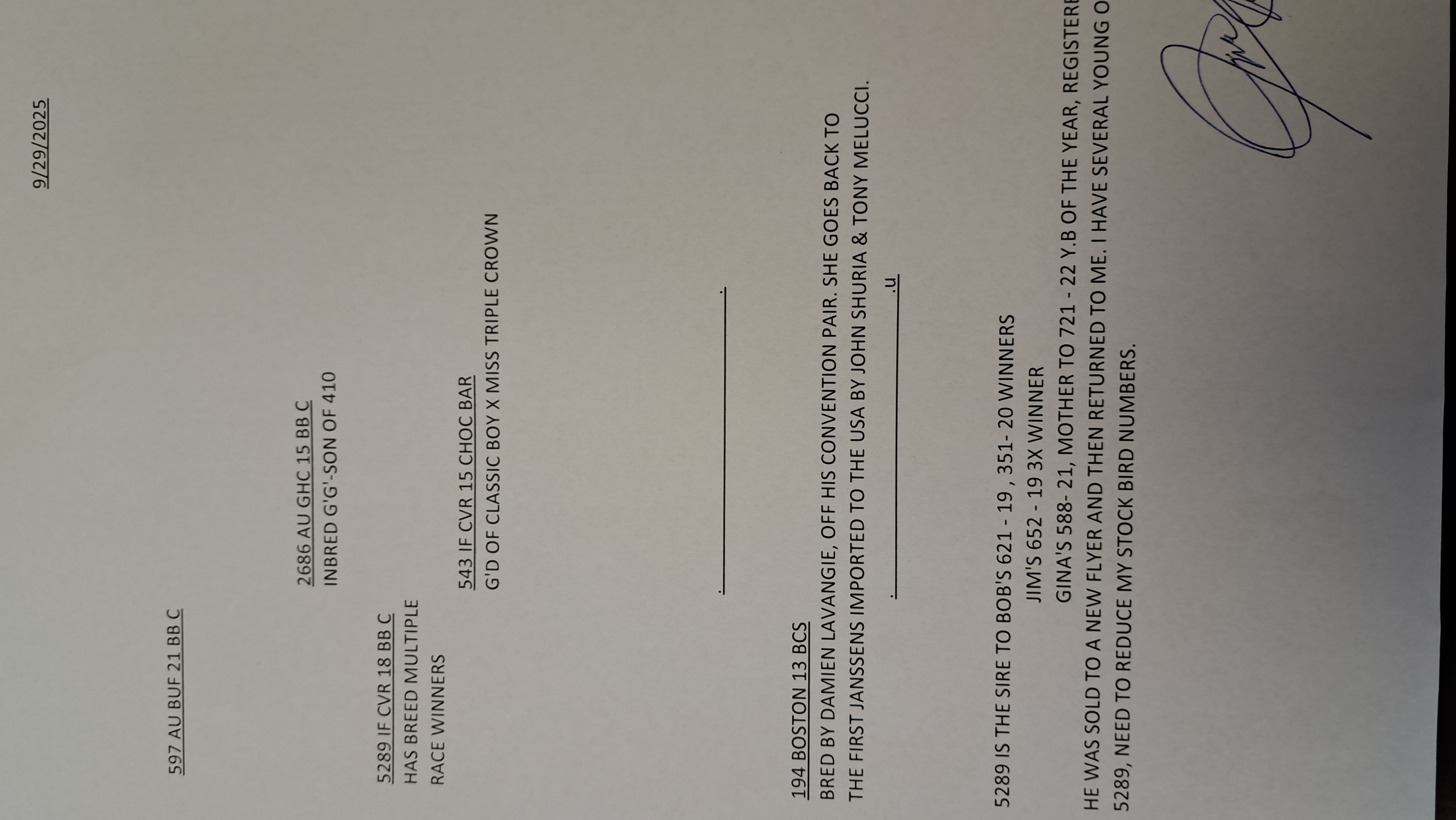 5289 CVR 18 BB C is currently a very potent breeder for Ed and now me. Bob had 2 winners. I have a 3x winner. Gina has his daughter off him and she bred 721 - 22 BB C Who is a registered champion.