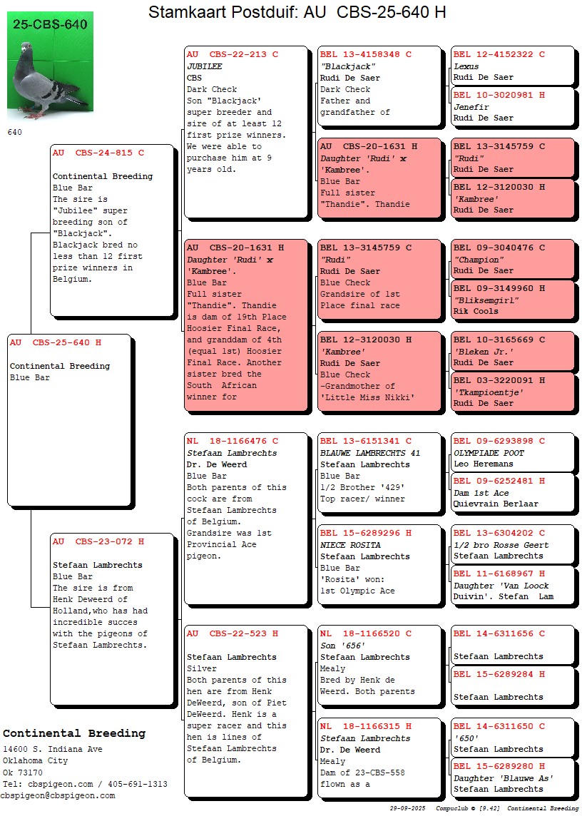 Dam: The sire is from Henk Deweerd of Holland,who has had incredible succes with the pigeons of Stefaan Lambrechts.