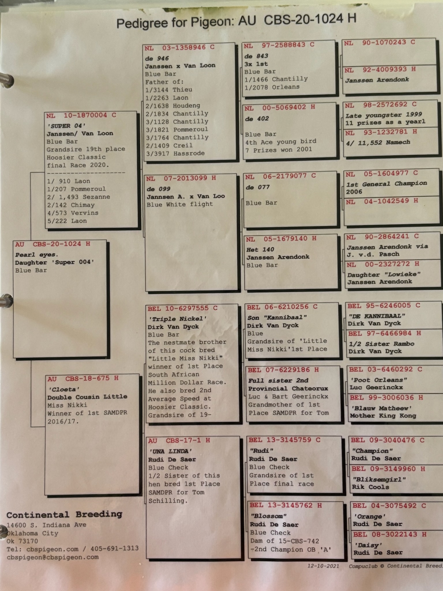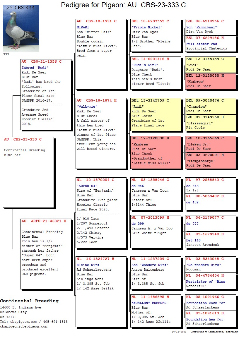 Beautiful BBH from CBS birds, see attached parents pedigrees.