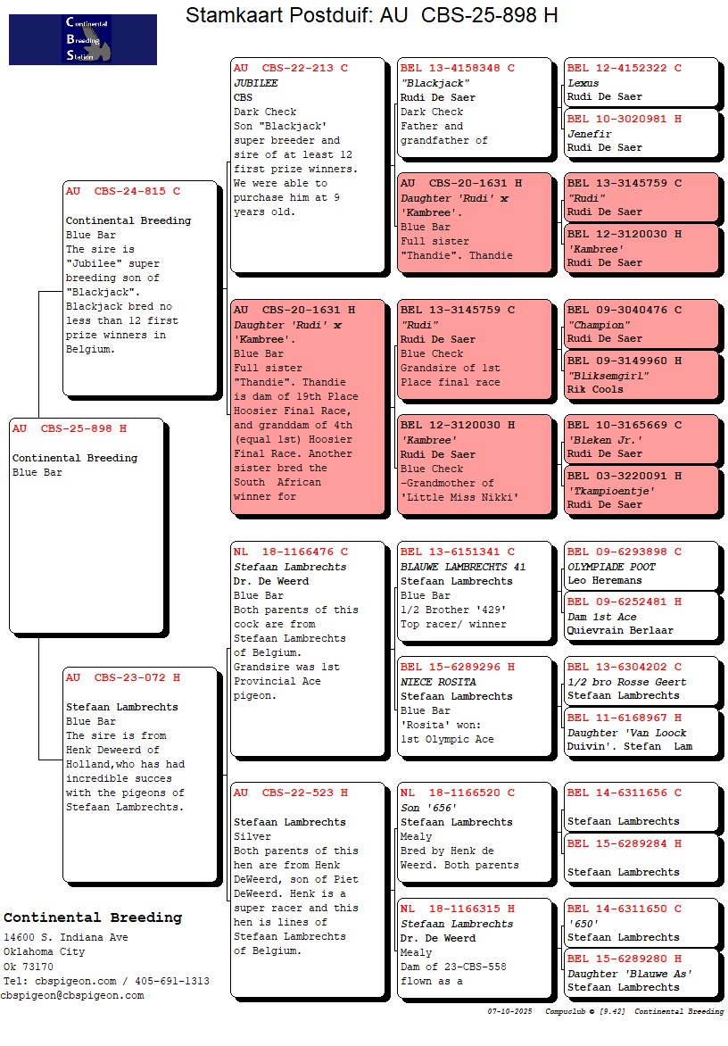 Dam: The sire is from Henk Deweerd of Holland,who has had incredible succes with the pigeons of Stefaan Lambrechts.