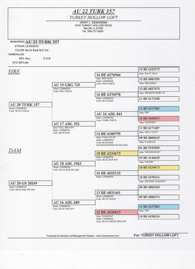 NICE BREEDING HEN. SIRE IS DOWN FROM RED SEAL DAM IS BRED BY CHRISTOPHER LOFT OUT OF AMERICAN DREAM LOFT STOCK. CHECK OUT PEDIGREE