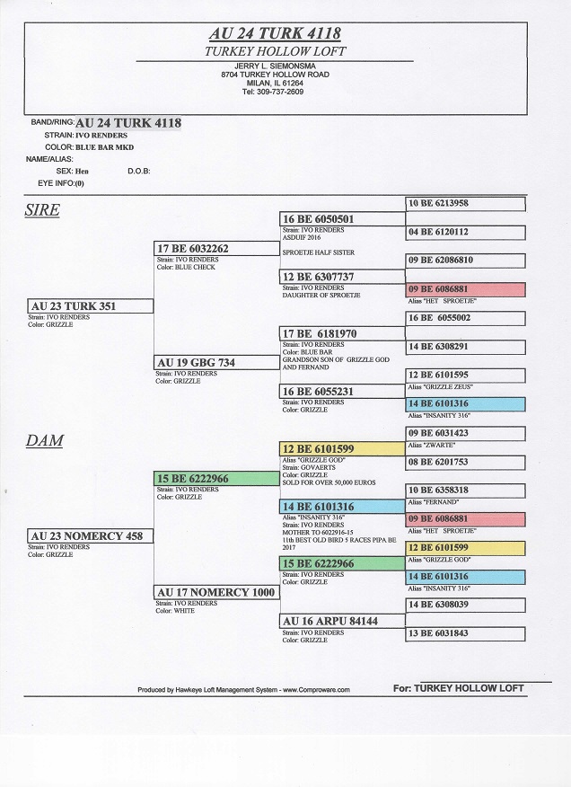 VERY NICE BLUE BAR MARKED HEN. OUT OF GRIZZLES.ALL IVO RENDERS, INBRED GRIZZLE GOD. CHECK OUT PEDIGREE
