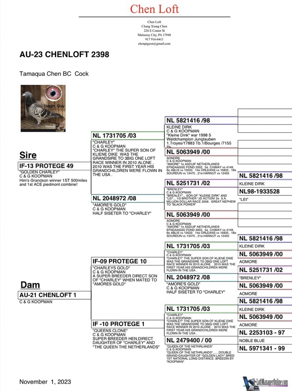 Inbred Grandson of CHARLEY. Median Big size cock. Father is son of CHARLEY mate to Double Granddaughter of CHARLEY. Check out the pedigree for detail.