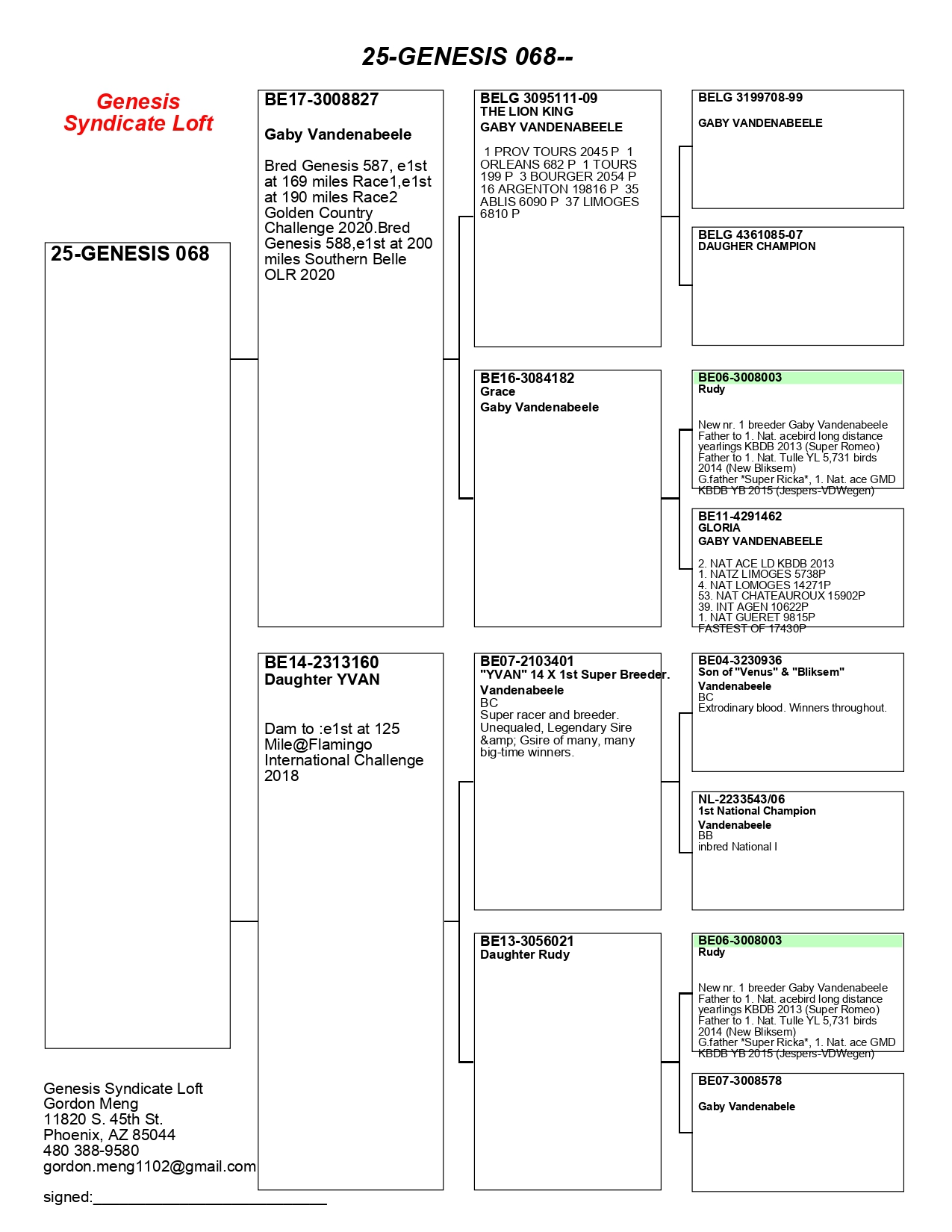 Sire:Bred Genesis 587, e1st at 169 miles Race1,e1st at 190 miles Race2 Golden Country Challenge 2020.
