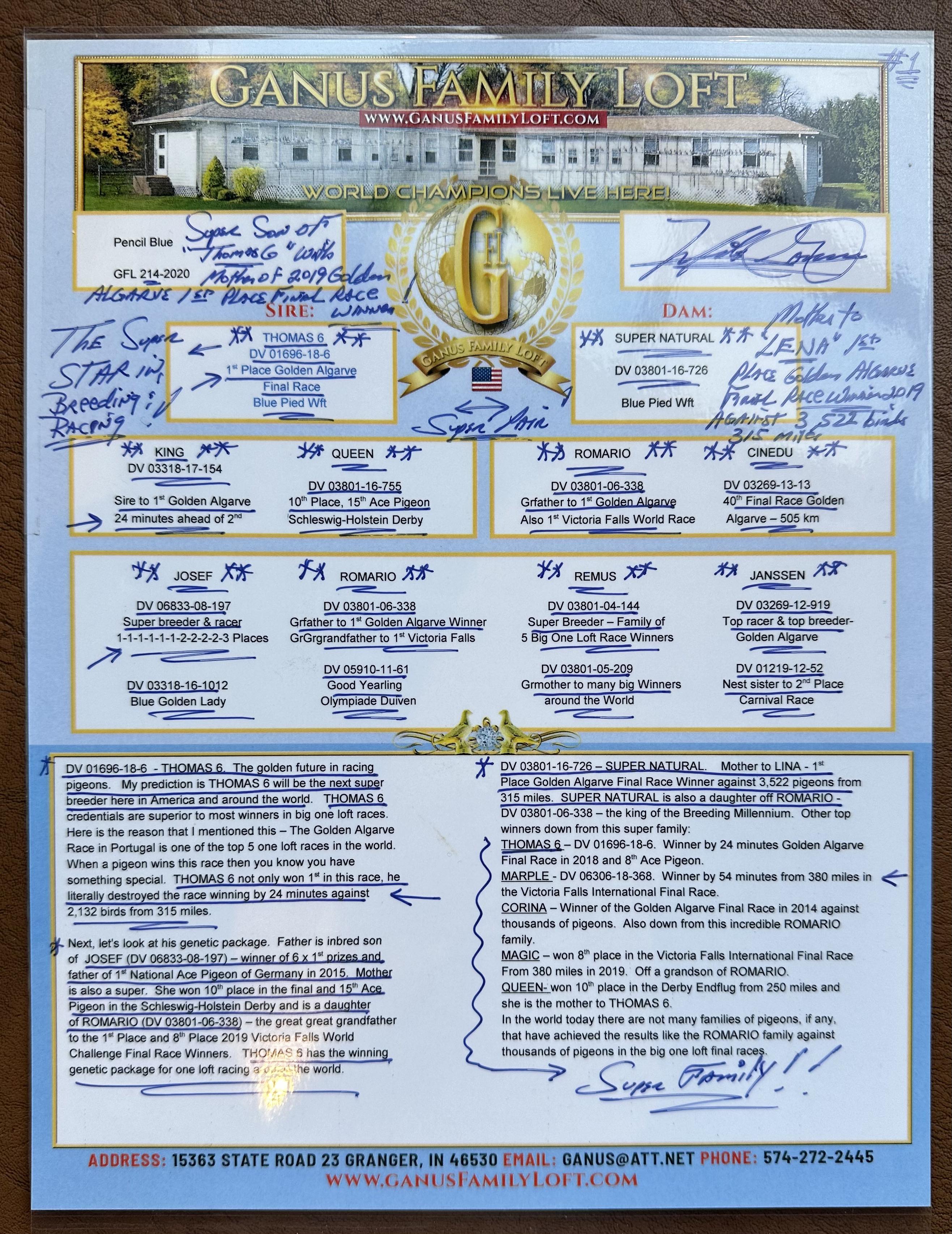 * SUPER SON OF " THOMAS 6 " * MOTHER OF 2019 GOLDEN ALGARVE 1ST PLACE FINAL RACE WINNER * INBRED OF " ROMARIO "
