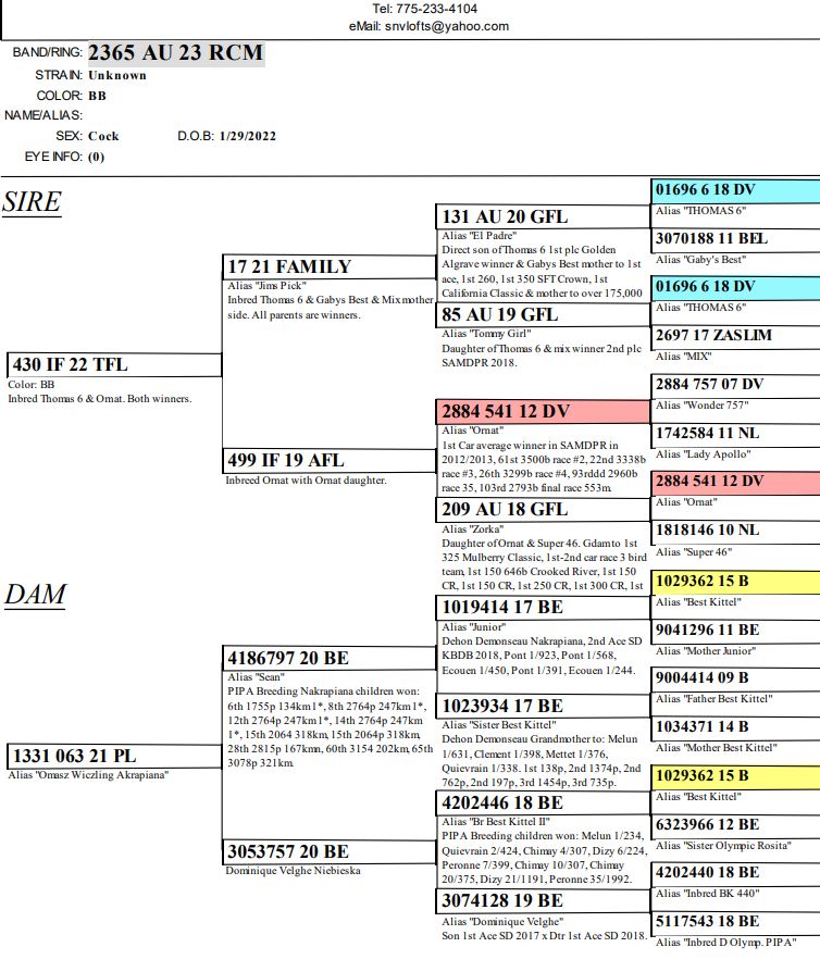 AU-23-RCM-2365 BBC, ready to breed. Please see Pedigree / parents pedigrees for more info. I cannot keep and breed them all due to a small loft. Giving someone a chance to breed and try!. Vaccinated for PMV / KM-1 also properly medicated to ensure health. Birds bred in individual walk-in breeding box / Pen / cage to ensure parentage. Bird will come with original pedigree. Birds sex not guarantee. Sorry about the picturesI need to adjust because it wont let me download more than 2.00MB so I have to cut it to make it smaller.