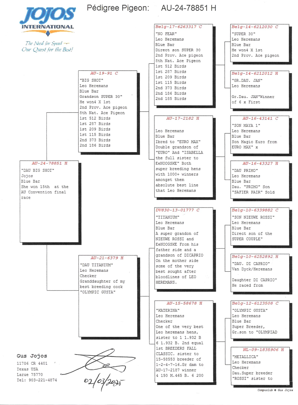 THIS IS A FANTASTIC HEN, IS NOT ONLY BRED FROM THE BEST OF JOJO INTERNATIONAL BUT SHE IS A PROVEN HEN