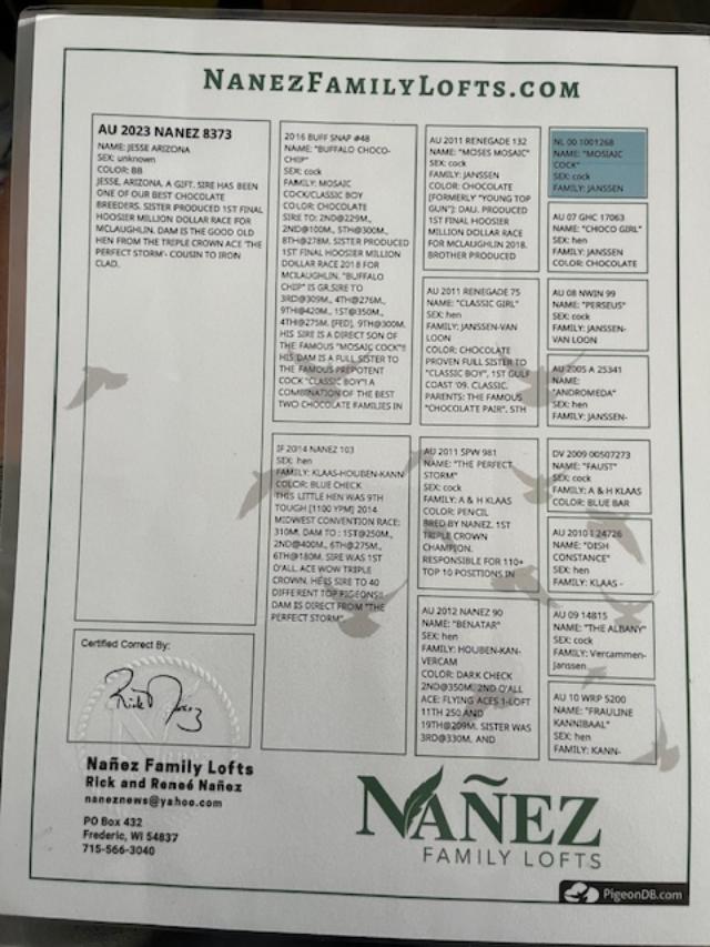 DIRECT OFF 2 VERY NICE NANEZ BIRDS BOTH PARENTS PEDIGREES POSTED , GOOD LUCK
