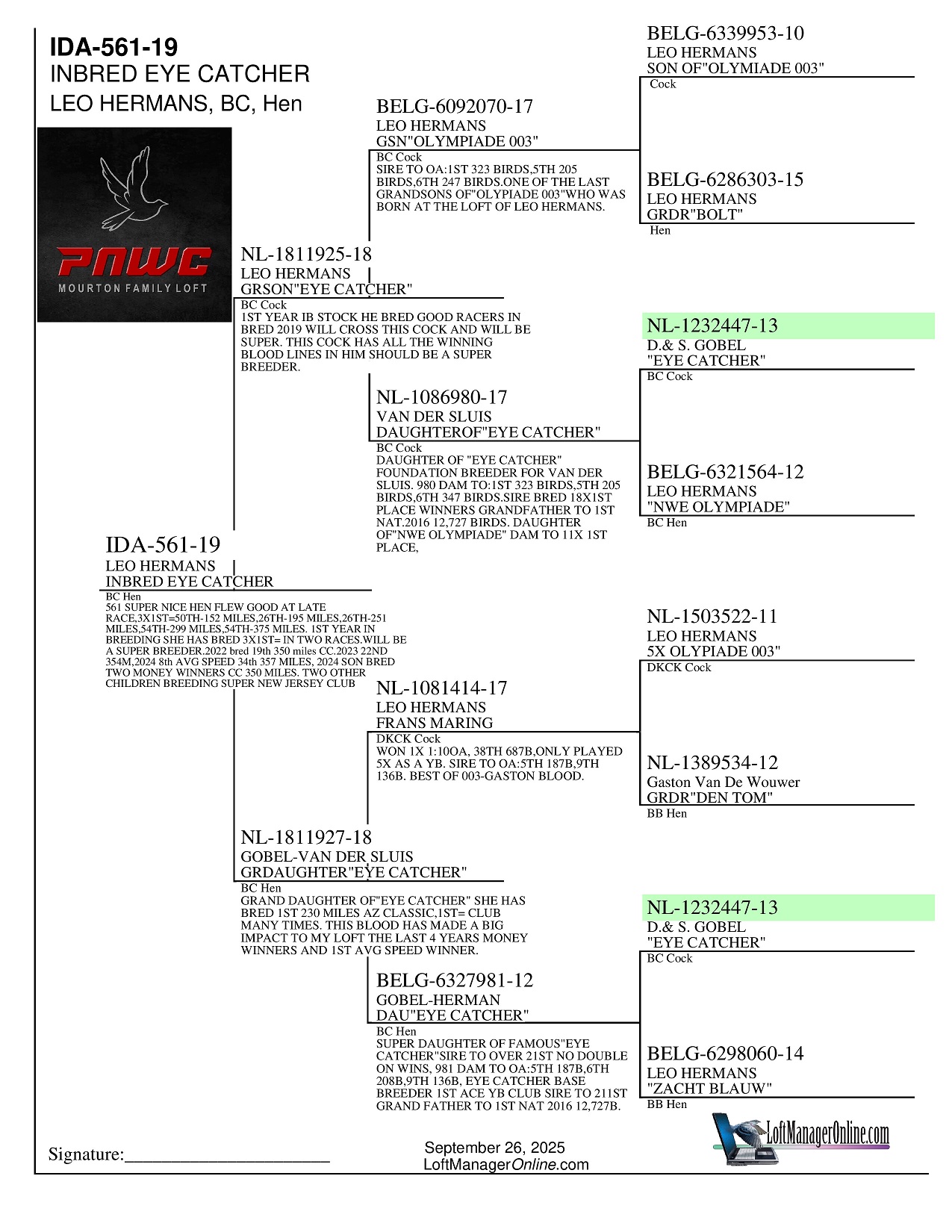 561 BEEN A SUPER BREEDER FOR ME ON 3 DIFFERNT COCKS,SHE HAS BRED MOMEY WINNERS CC,RC,BB,BG, AND HER CHILDREN ARE BREEDING SUPER IN CLUB RACES.