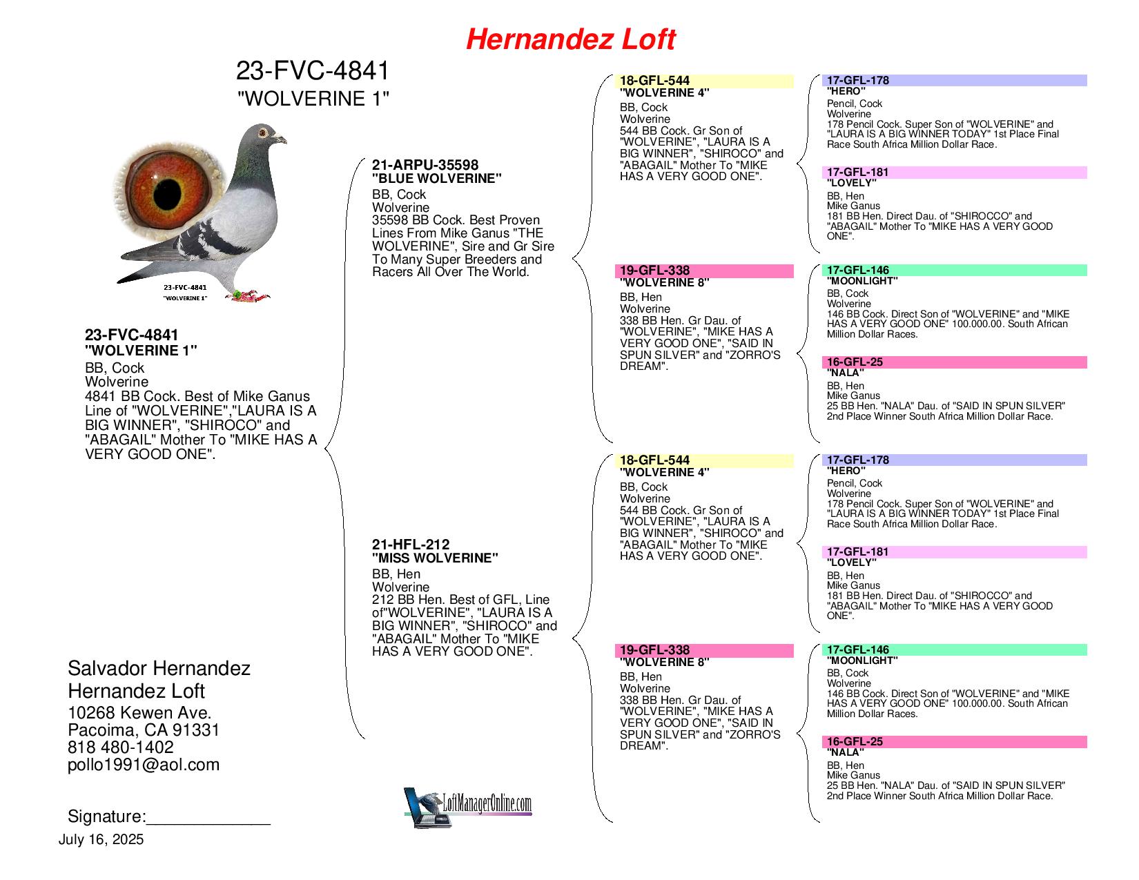 23-FVC-4841 BB Cock. Best of Mike Ganus Line of "WOLVERINE", "LAURA IS A BIG WINNER", "SHIROCO" and "ABAGAIL" Mother To "MIKE HAS A VERY GOOD ONE".