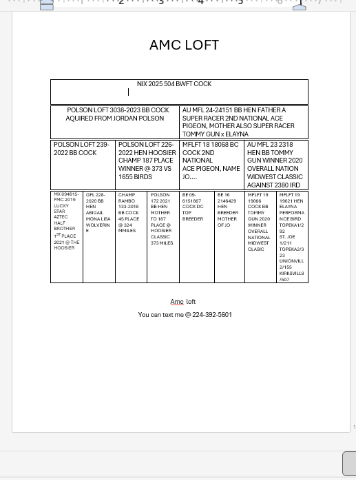 BIRD BUT DIDN'T HAPPEN. FULL SIBLING OF THIS BIRD IS CURRENTLY FLYING @ THE OLR DASH FOR CASH AND FLORIDA PIGEON DERBY. HAS A GOOD BLOOD LINE
