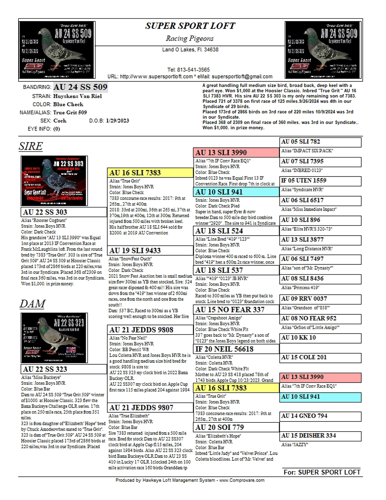 The sire is Inbred AU 16 SLI 7383 "True Grit" 3 times. AU 16 SLI 7383 was a son of AU 13 SLI 3990 IF Convention Race