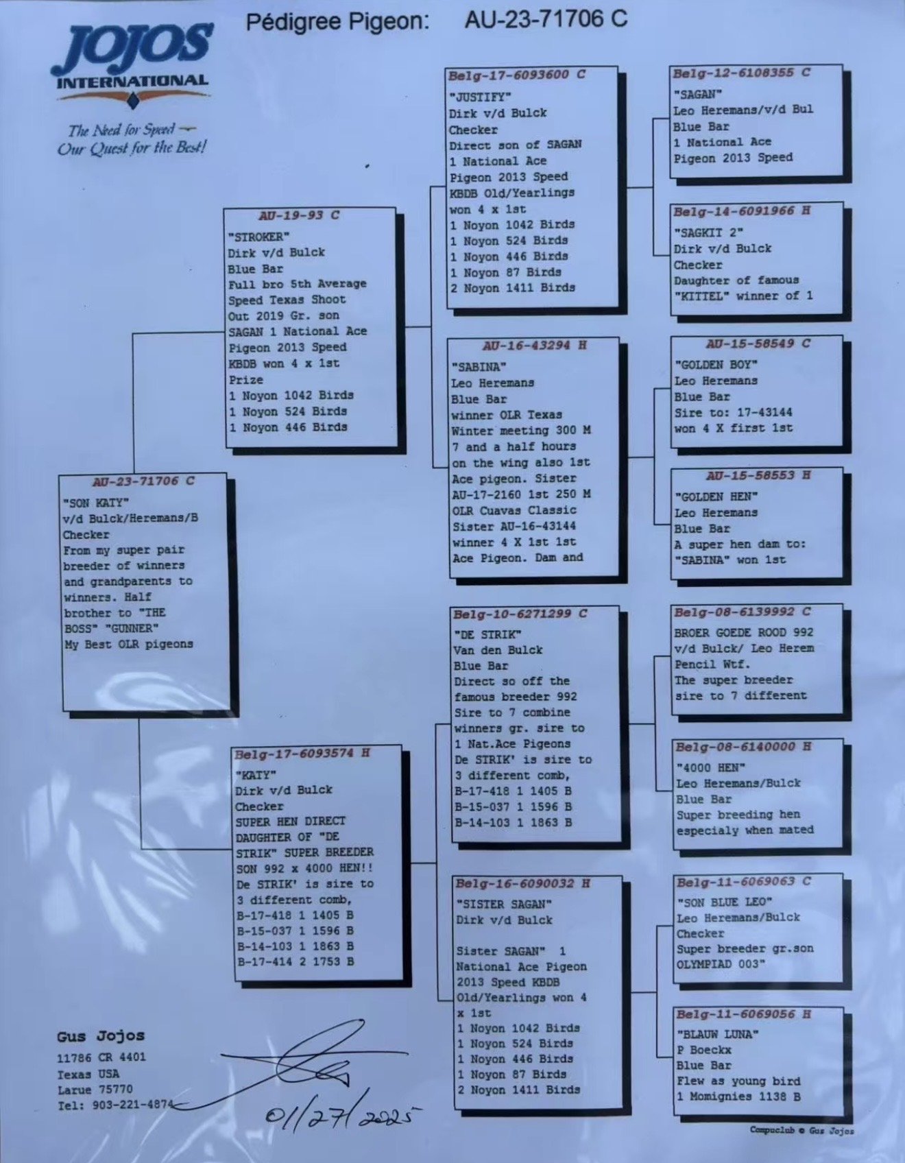 BC Cock. From super pair Breeder of Winners and Grandparets to WInners. Half brother to "THE BOSS" "GUNNER" Check out the pedigree.
