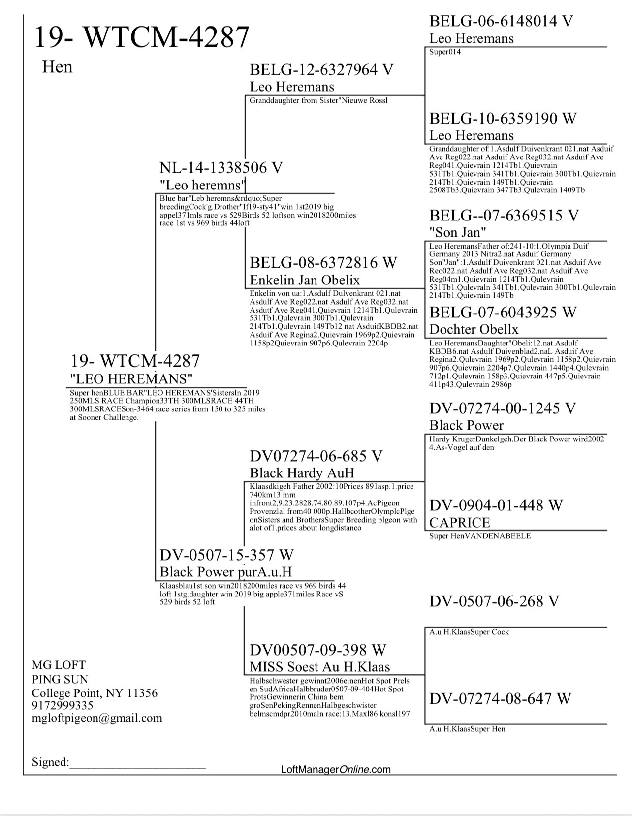 Son jan "leo heremns"enkelin jan & obelix,"black power"basic breeding pigeon selectio