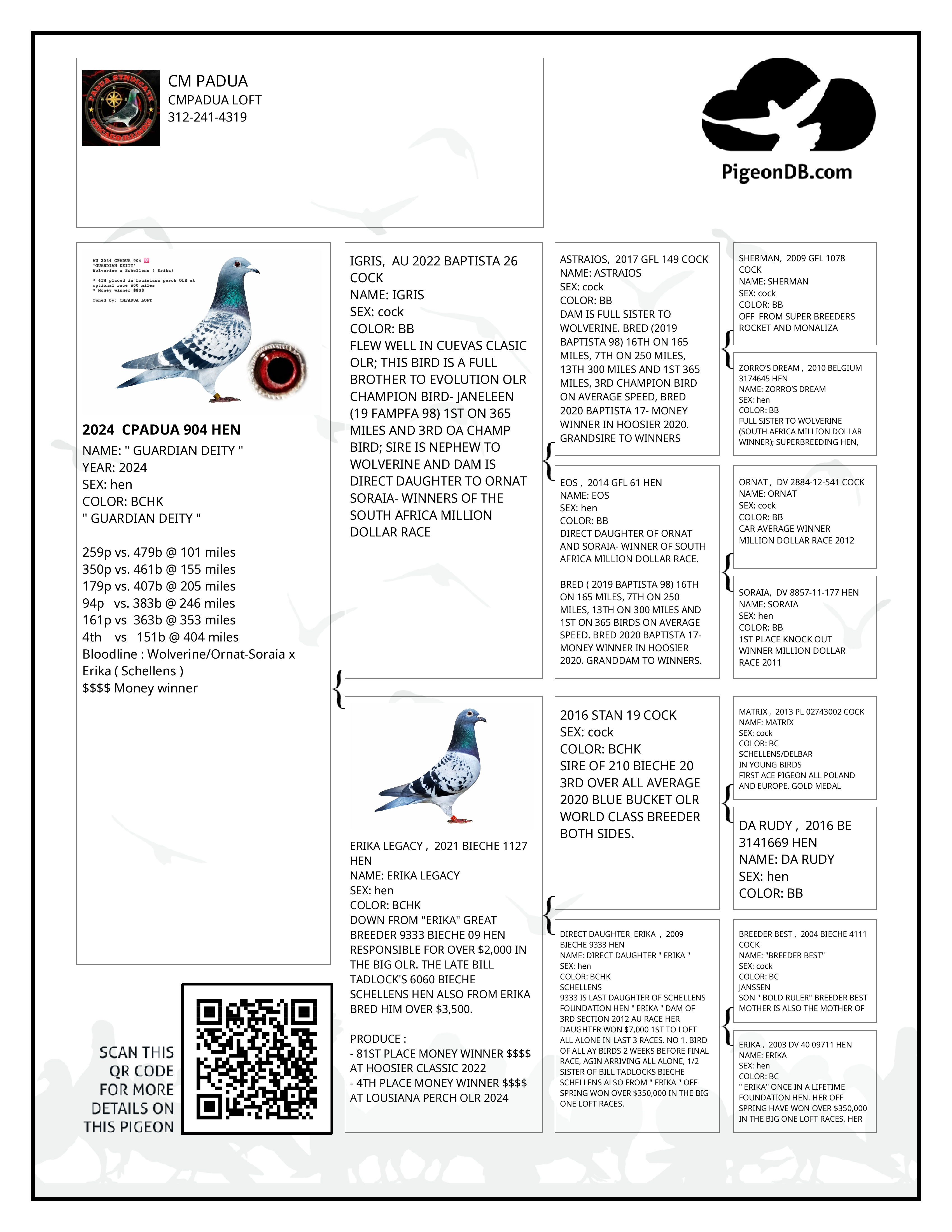 BLOODLINE : 287/278 OF BALDWIN x SCHELLENS " ERIKA " / WOLVERINE
