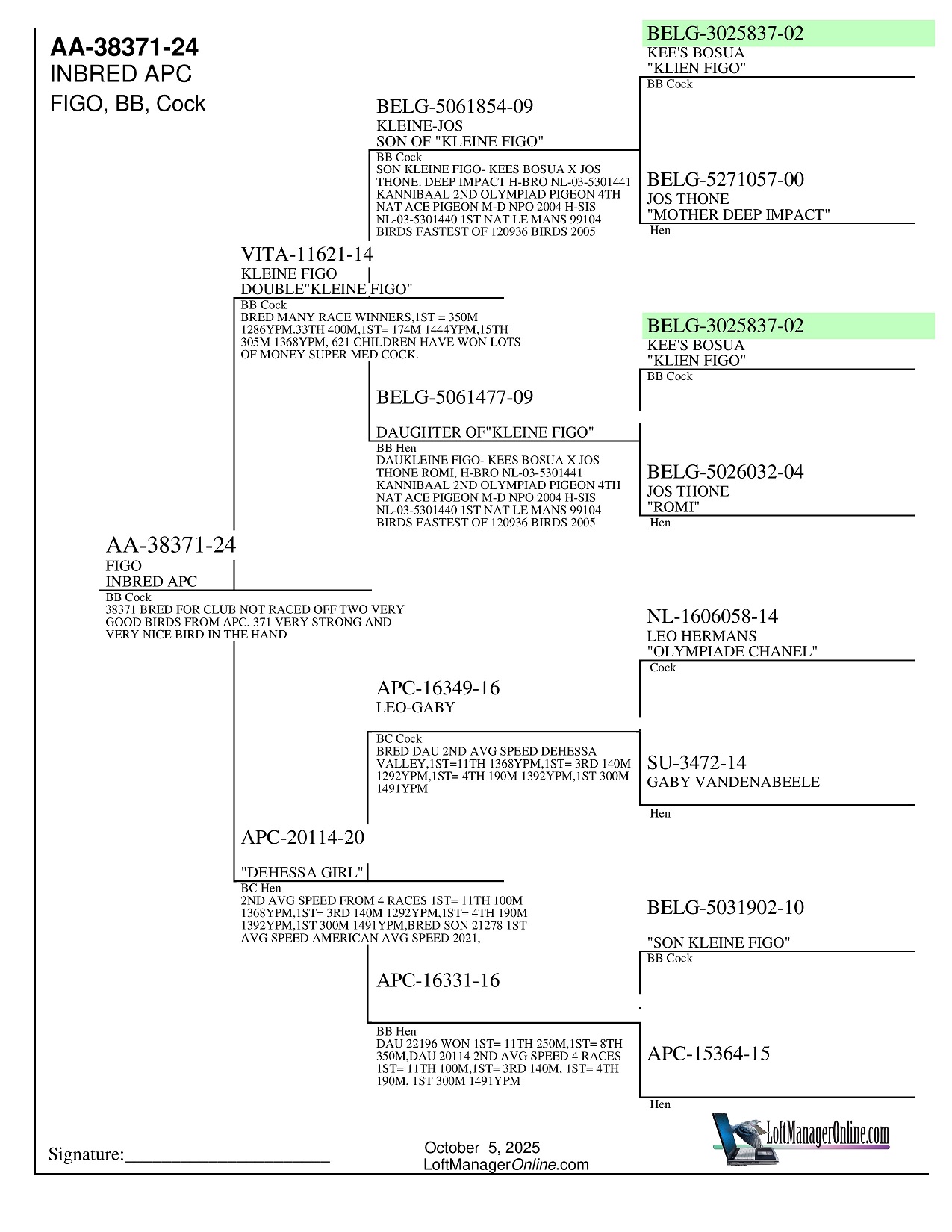 38371 VERY STRONG COCK BRED FOR STOCK BUT SUPER IN THE HAND. BOTH PARENTS SUPER BREEDERS OR RACERS FOR APC.