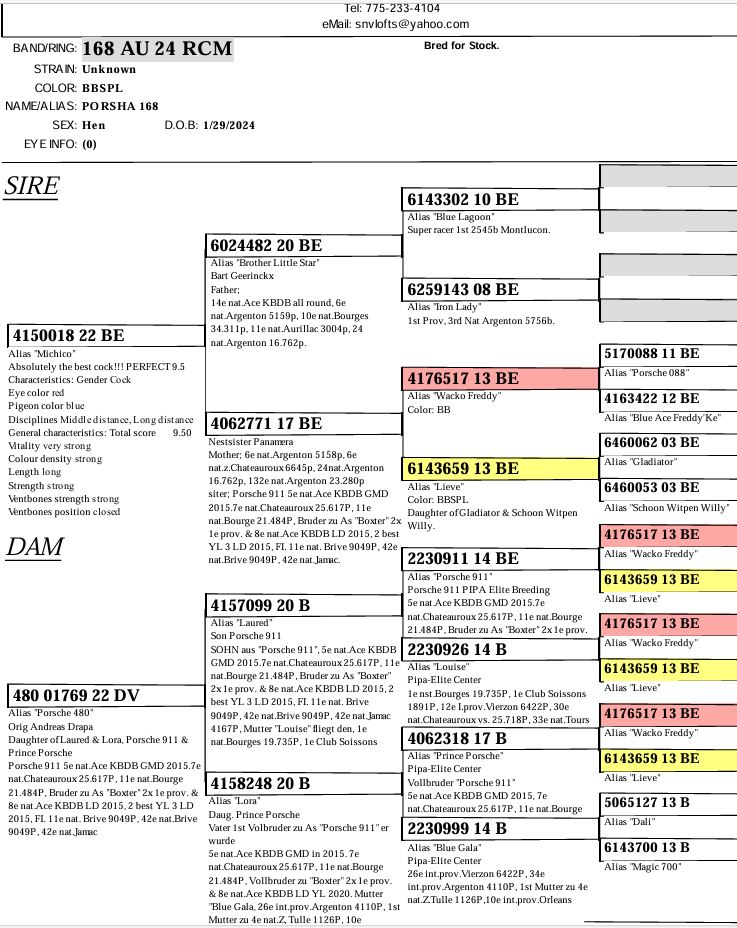AU-24-RCM-168 BBPENSPLH, ready to breed. Please see Pedigree / parents pedigrees for more info. I cannot keep and breed them all due to a small loft. Giving someone a chance to breed and try!. Vaccinated for PMV / KM-1 also properly medicated to ensure health. Birds bred in individual walk-in breeding box / Pen / cage to ensure parentage. Bird will come with original pedigree. Birds sex not guarantee. Sorry about the picturesI need to adjust because it wont let me download more than 2.00MB so I have to cut it to make it smaller.