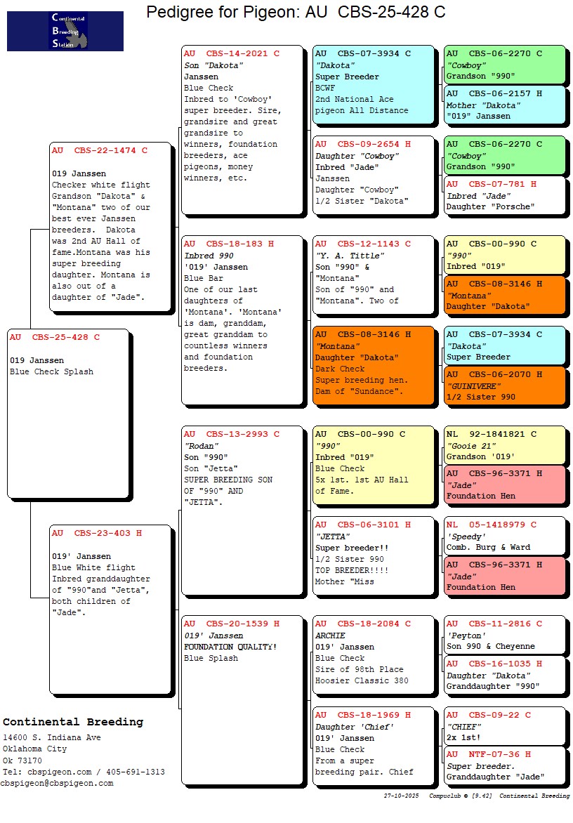 Sire: Grandson "Dakota" & "Montana" two of our best ever Janssen breeders. Dakota was 2nd AU Hall of fame.Montana was his super breeding daughter. Montana is also out of a daughter of "Jade".