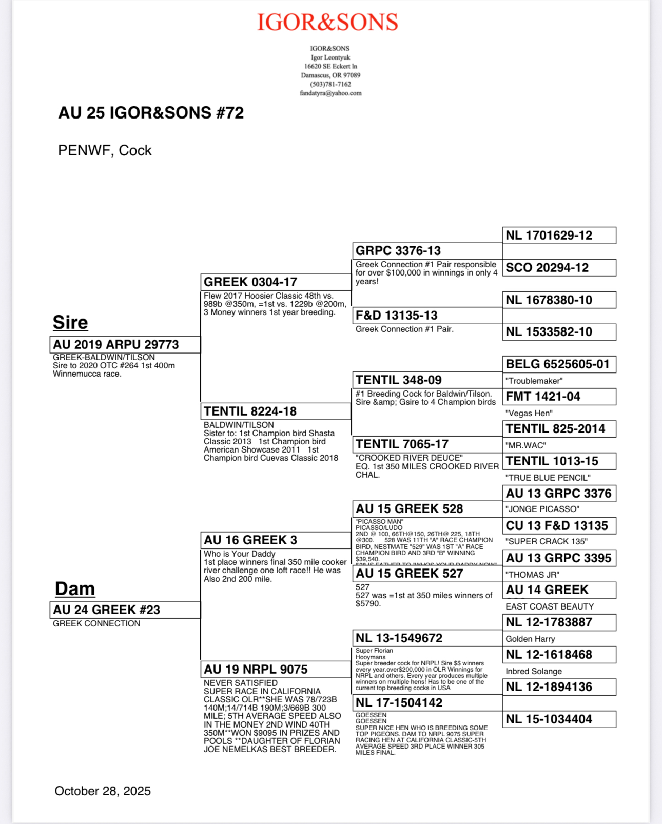 AU 2025 IGOR&SONS #72 PENWF Cock