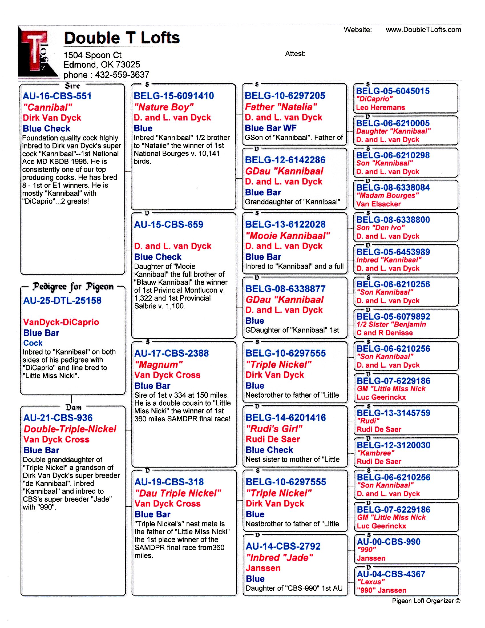 Sire: AU-16-CBS-551 “Cannibal” – Dirk Van Dyck cock that is inbred to “de Kannibaal” the 1st National Ace MD KBDB 1996. He is also a great-great-grandson of “DiCaprio”. He is one of our best breeders year after year!.