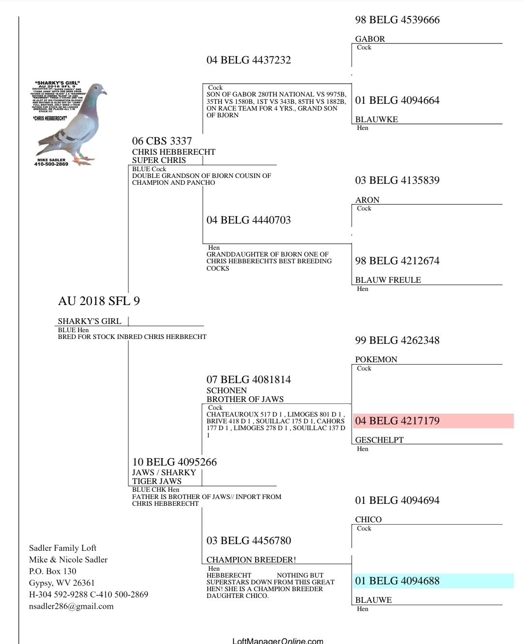 This hen was bred for future breeding she was bred 2 years and bred winners each year in club races. Due to moving and building a small loft i must let go some of my best. See pedigree for details