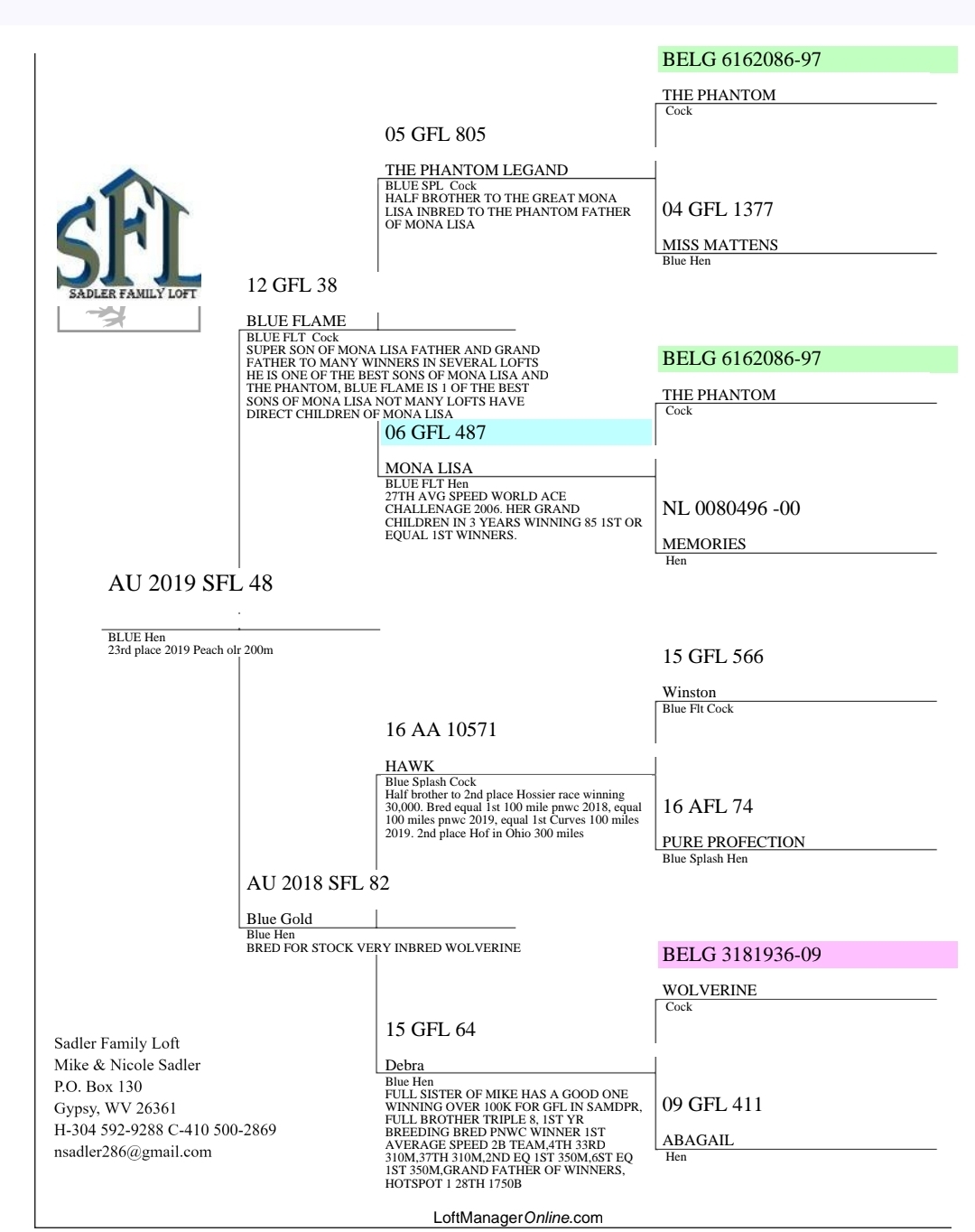 This is a very rare opportunity to get a direct granddaughter of Mona Lisa on father's side and a inbred great granddaughter of Wolverine on mother's side, to top it off she is a money winner in peach olr a very tough race. Due to moving and building a smaller loft i have to cut down