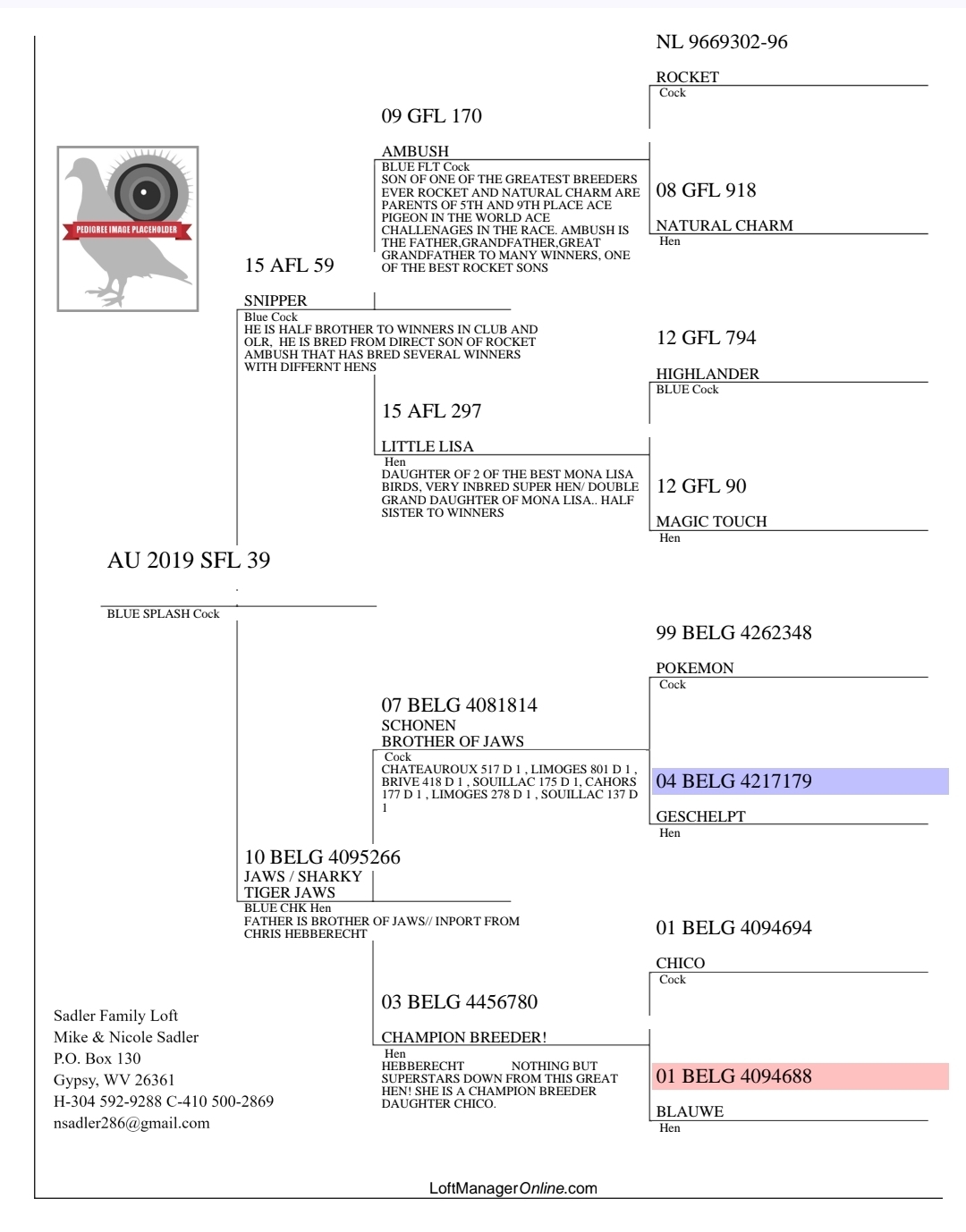 Due to moving and having a small loft I'm not able to keep extra birds sitting. I only kept the best proven birds with results. This cock has some of the best Rocket family and Chris Hebberecht birds