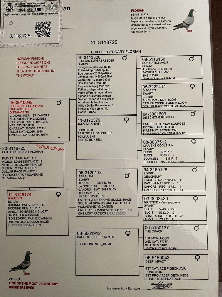 725 SMALLER HEN BUT VERY NICE ONLY HAVE BRED HER TO "555" AND HER CHILDREN WAS BRED 2025.BOTH PARENTS OR SUPERS! FATHER SUPER RACER AND BREEDER AND MOTHER IS DAUGHTER OF"ABRAHAM" WOLVERINES FATHER.