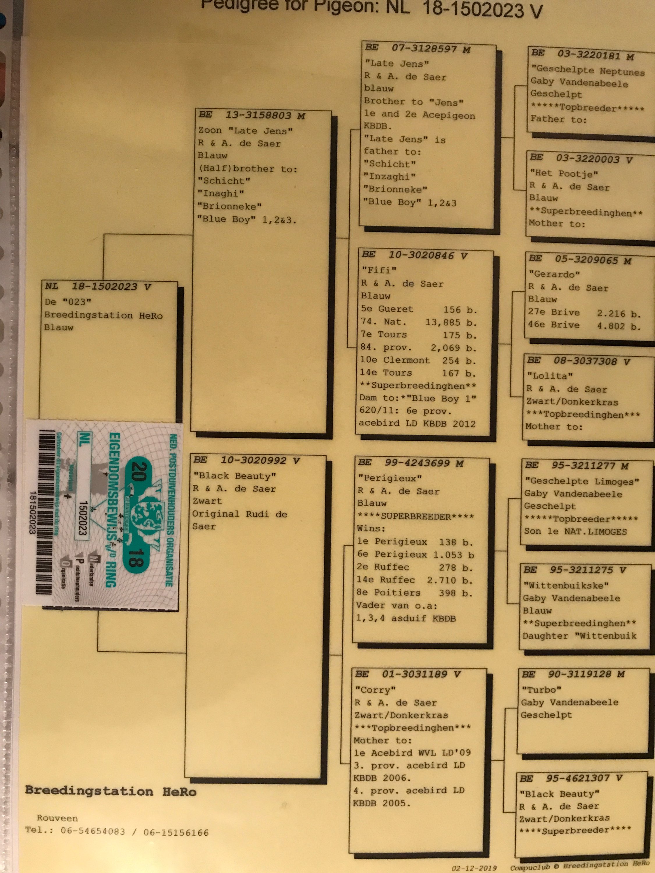 Gaby Vandenabeele, his pigeons are part of the Belgian pigeon history and perhaps the best colony in all of Belgium! The names of his best breeders like "Kleinen" and son "Wittenbuik" are known all over the world where pigeons are flying. Who wouldn't want to have children or grandchildren out of these super ancestors?