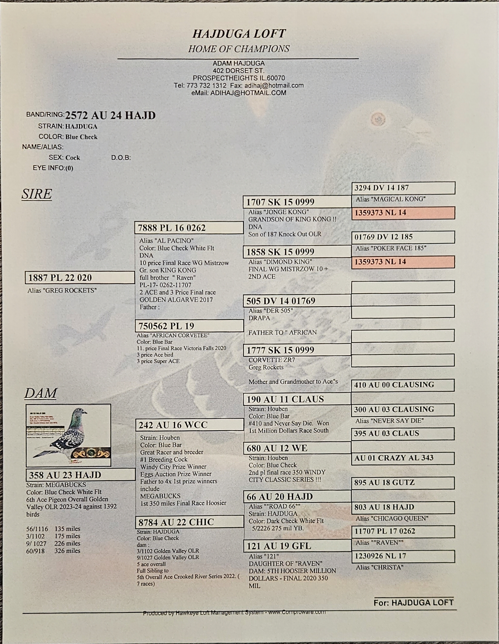 Very nice young male, nice in hand, closed vants, one pin tail. Great family " Raven"