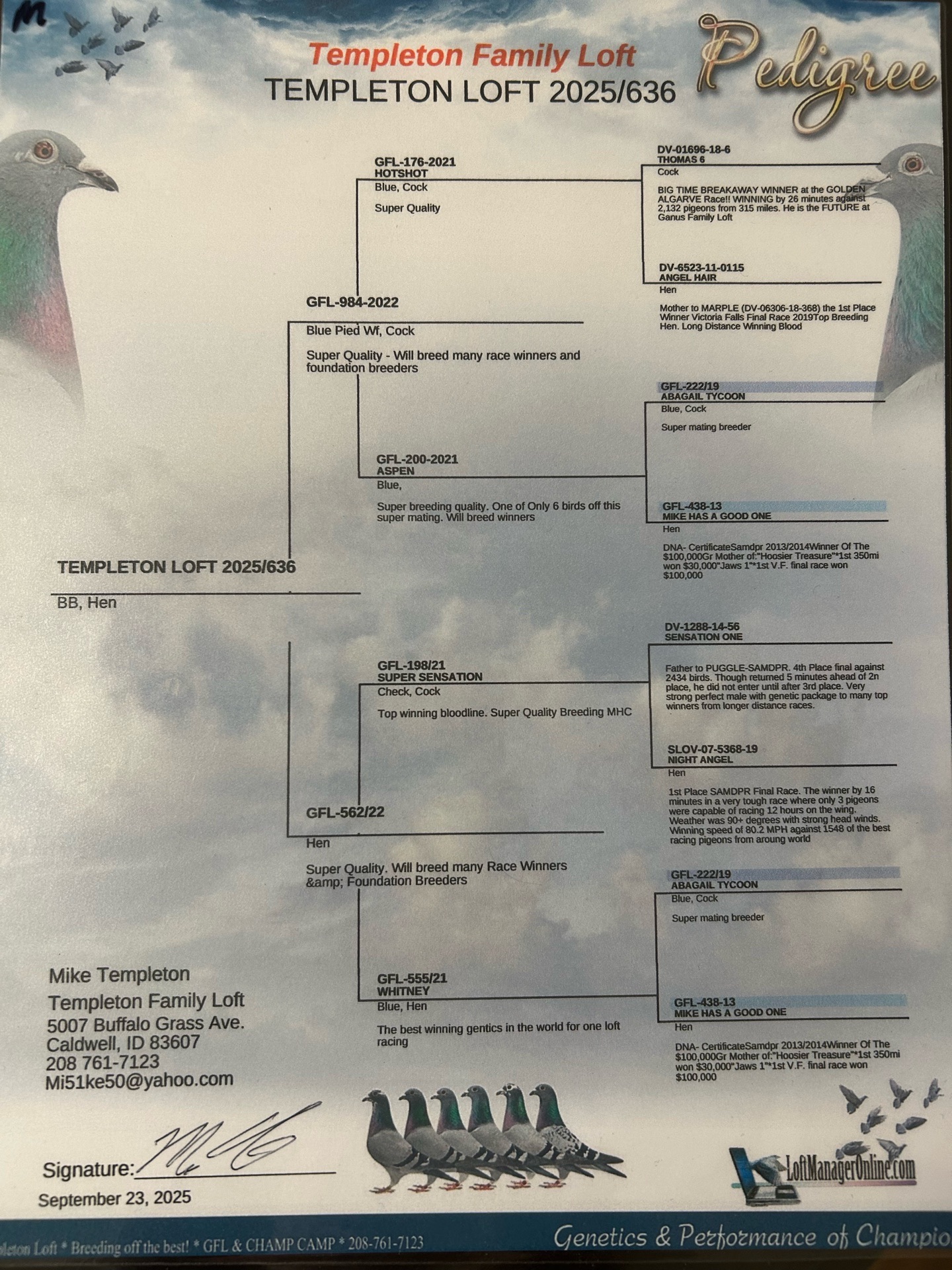 We have a GG-Daughter of THOMAS 6 1st Pl., Golden Algarve 2018