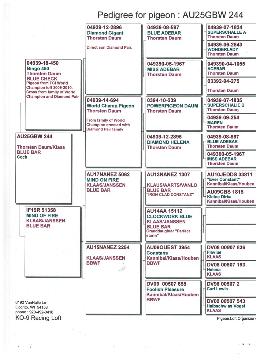 VERY NICE BIRD BRED BY JIM KONYN GREEN BAY & NORTHSIDE RPC FUNDRAISER