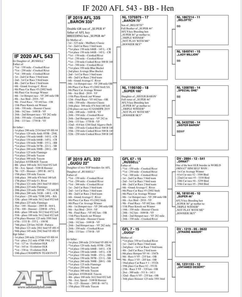 AFL's record at OLRs with Ornat speaks for itself. Do not miss out on a chance to get an outstanding hen.