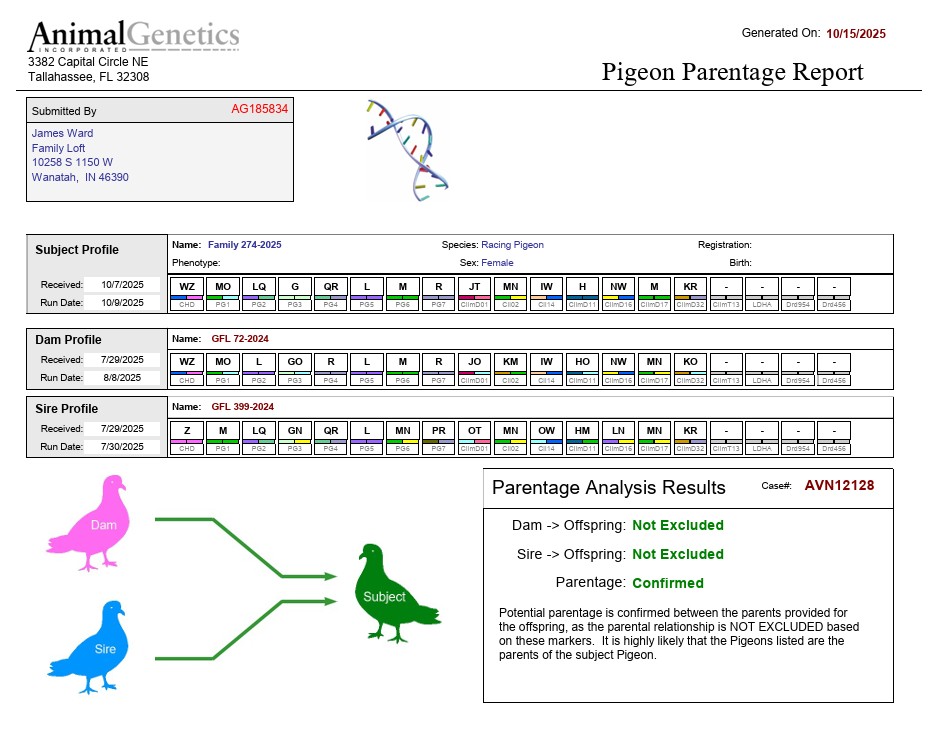 Mother - GFL 72-2024, Daughter to Thomas 6, 1st Place Golden Algarve winner by 24 minutes. Thomas 6 Family has dominated one loft racing in BIG comeptitions over the past 5 years.