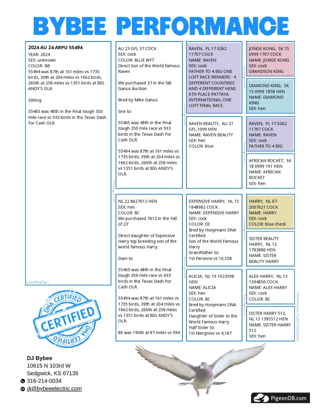 This bird was raced and proven at BIG ANDY'S OLR last season, super super bird!!!