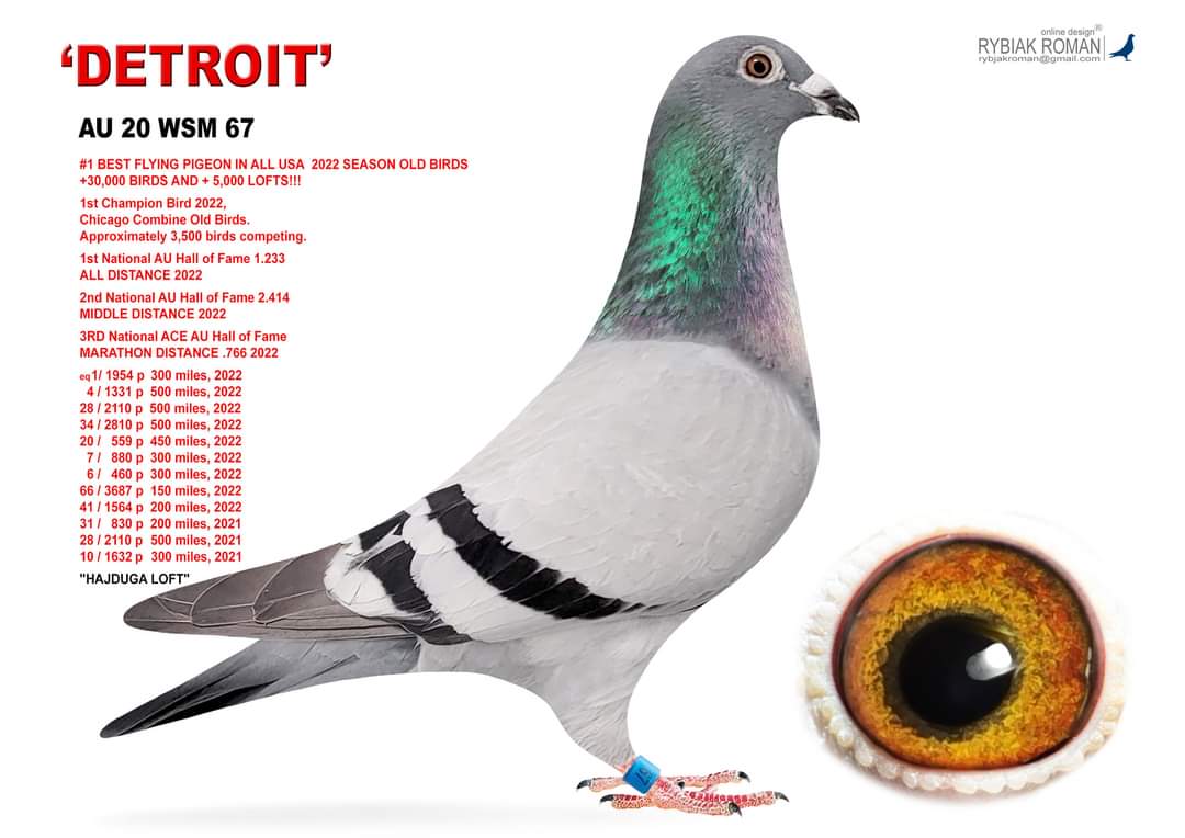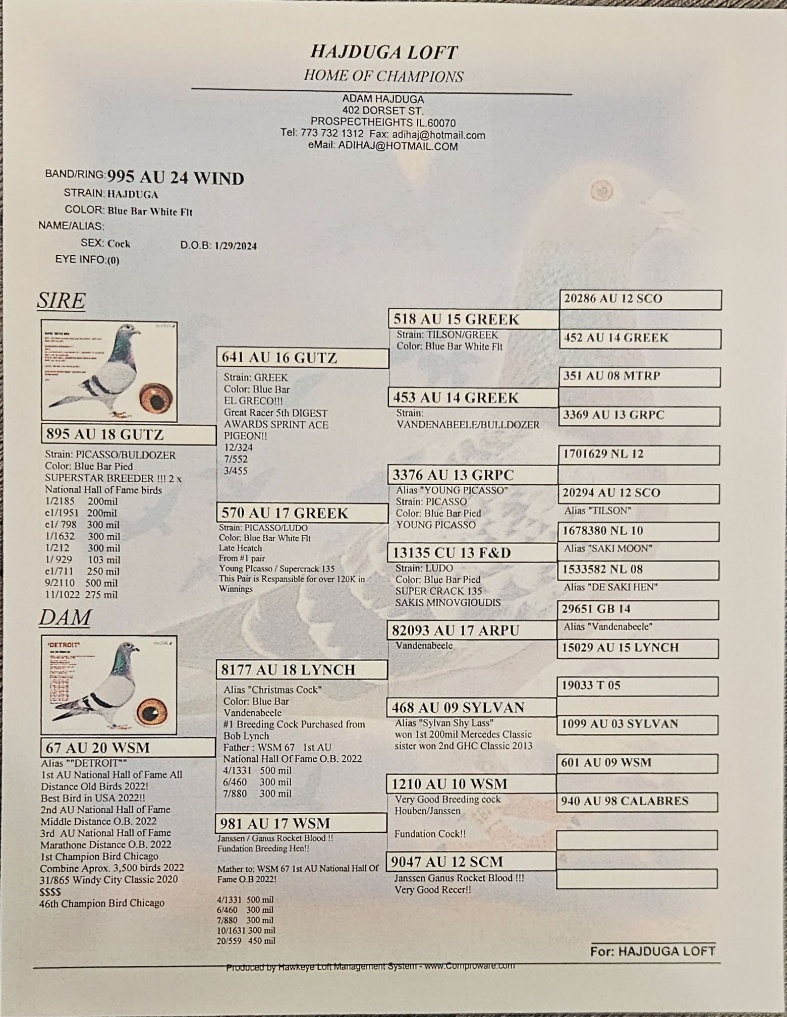 Dam: WSM 67 . Probebly one of the best racer in of loft ever!!! 1 National Hall of Fame. National Ace in multile cat..
