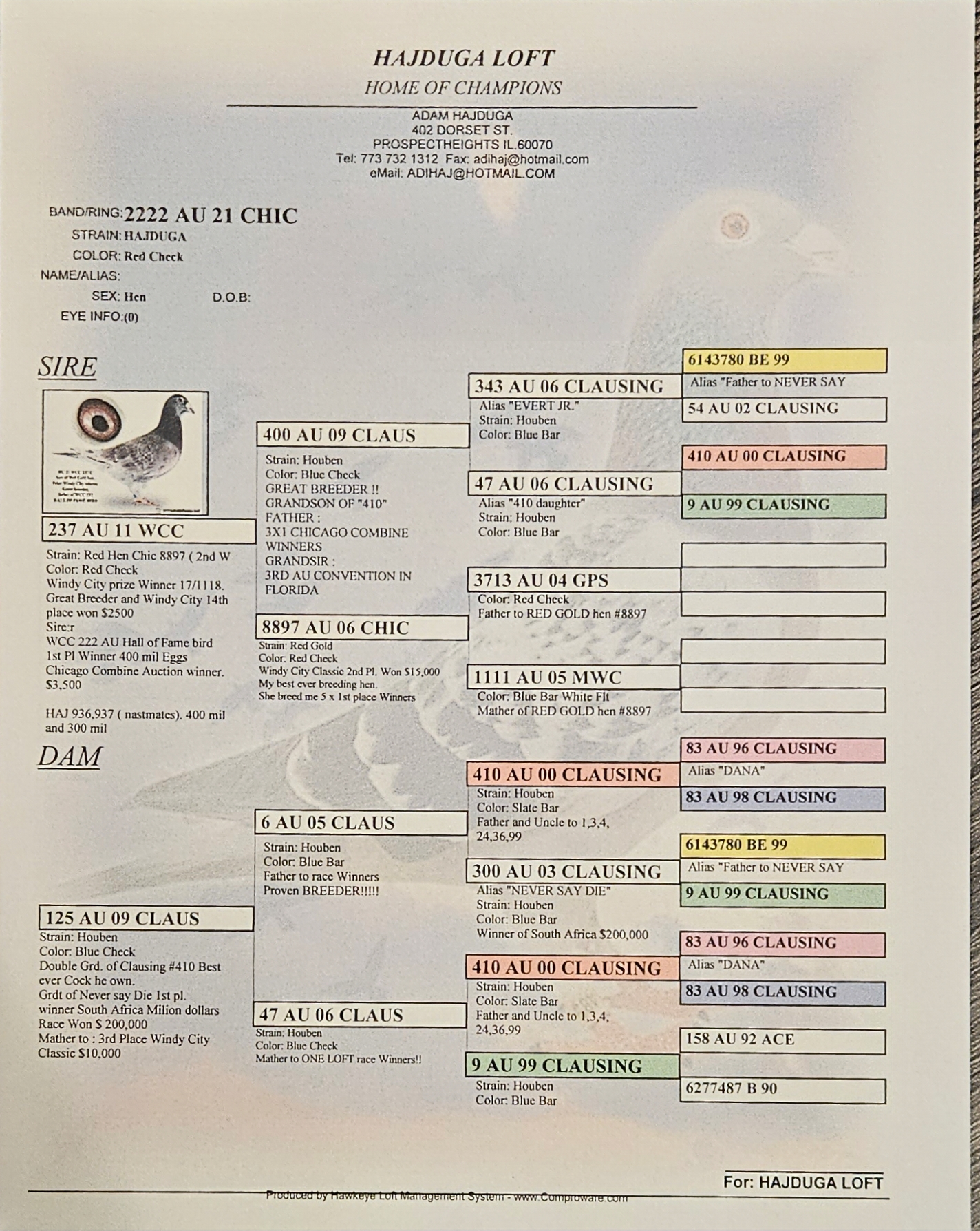 That red hen was a backbone of my loft years ago. A lot of winners SUPER breeding hen.